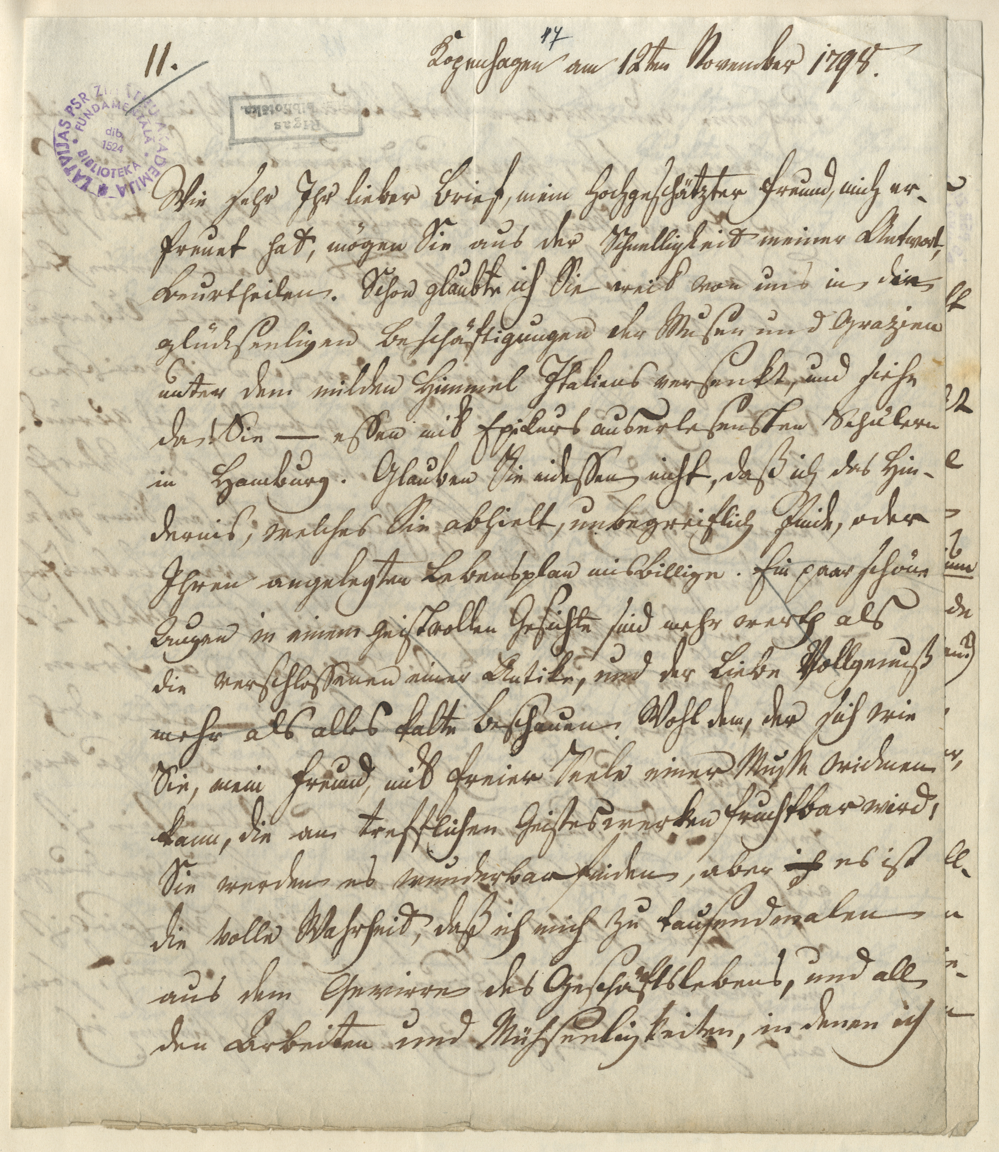 Schmidt-Phiseldeck Konrad von. Brief an Garlieb H. Merkel. - Kopenhagen, am 12ten November 1798. - 4 S. - Ms. 930a, Nr. 11, Bl. 29r-30v