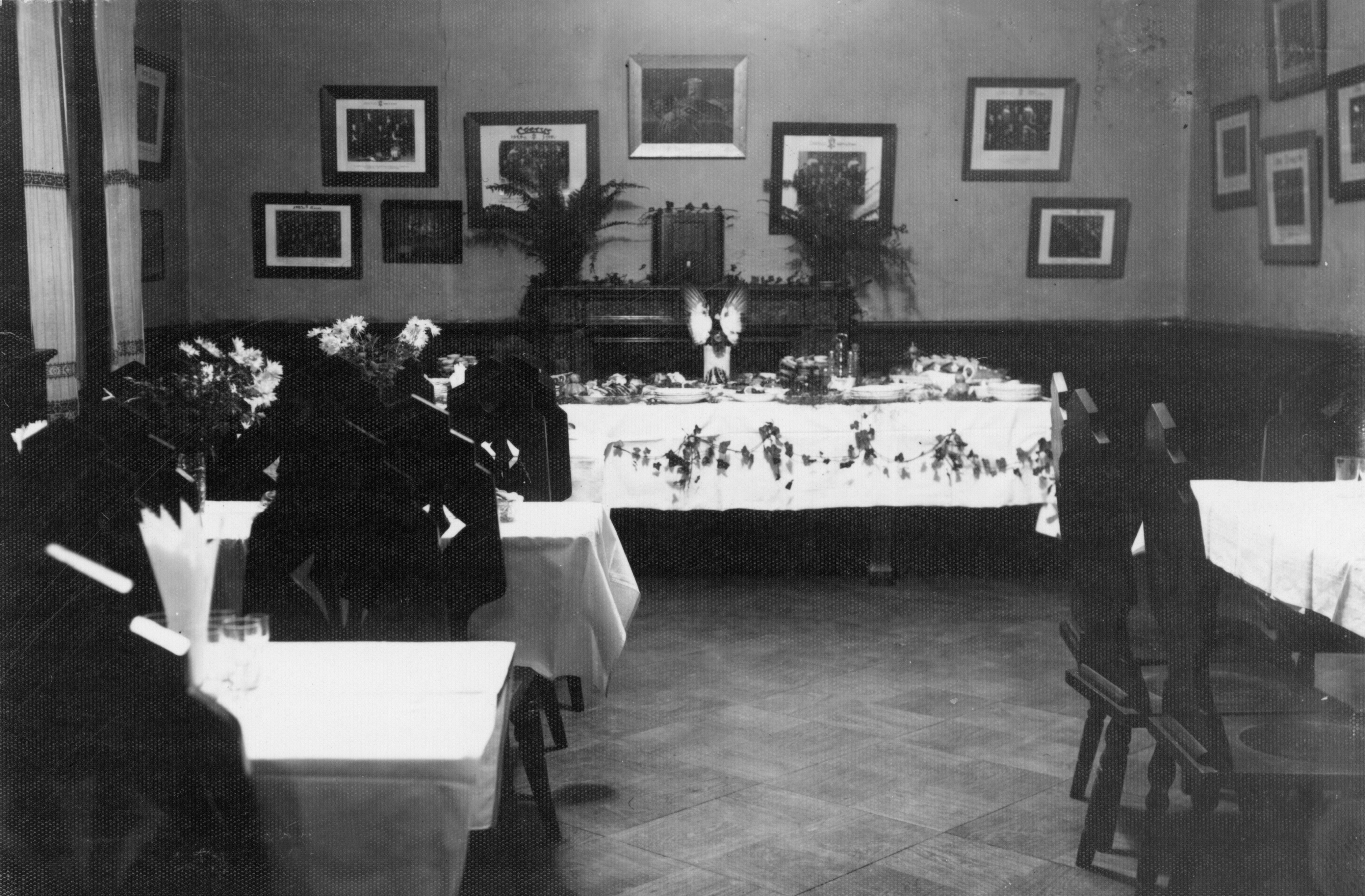 Fotogrāfijā redzams latviešu studentu korporācijas Latvia Filistru biedrības Dāmu komitejas uzklāts svinību galds Lāčplēša dienai, 1933. gada 11. novembrī, ko atzīmēja Latvia namā Šarlotes ielā 3, Rīgā