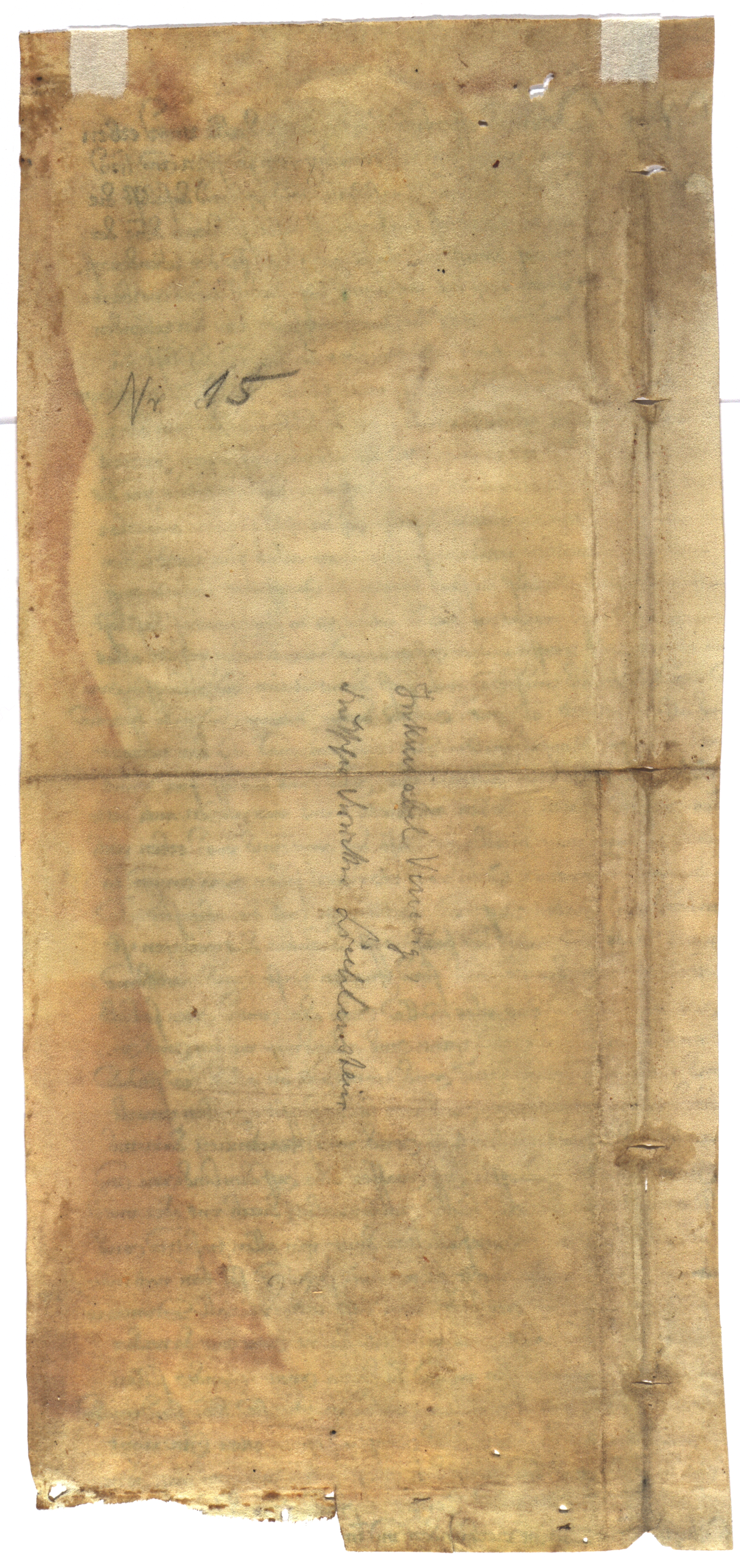 [Juridiska dokumenta fragments] [rokraksts] : [pergaments : klostera līgums]. Vācija : [15. gs.]. 1 lp. : pergaments ; 30x14 cm