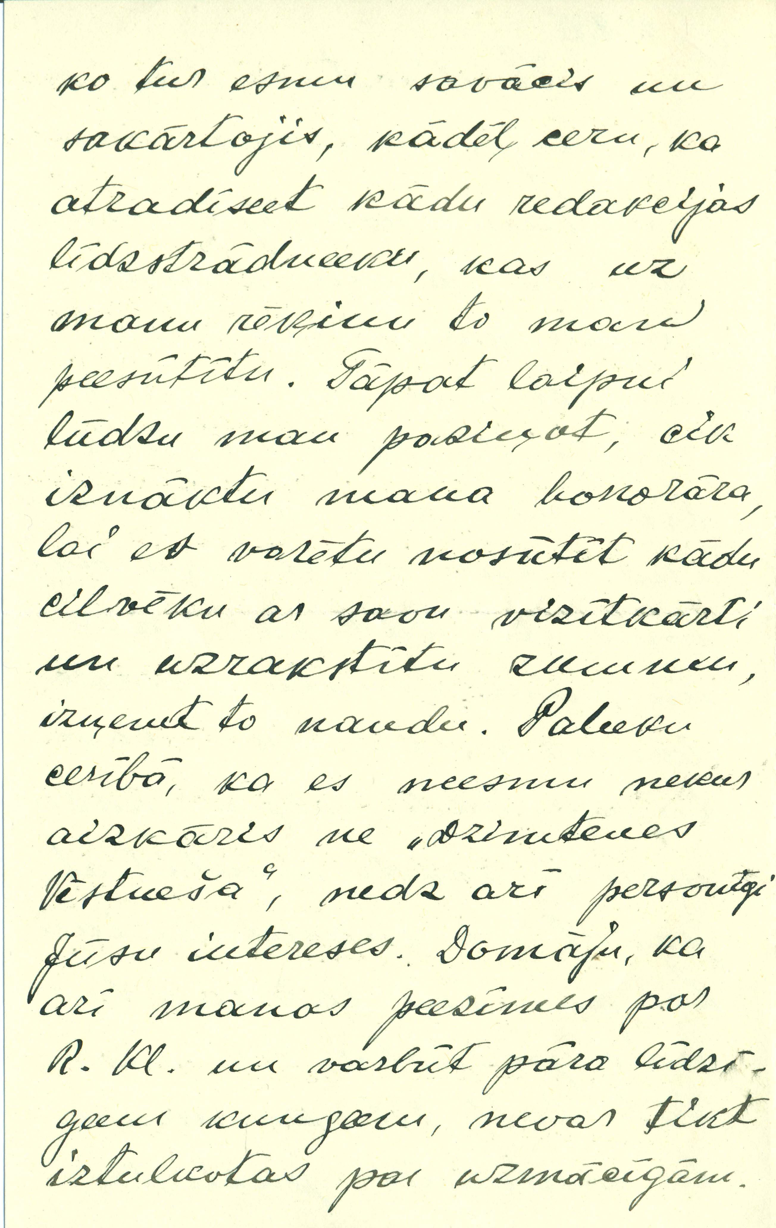 P. Šmita vēstule M. Āronam par sava raksta "Ļaunu ļaužu valodiņas" publicēšanas gaitu, polemikas latviešu presē ar R. Klaustiņu un citiem neauglīgumu, honorāra saņemšanu