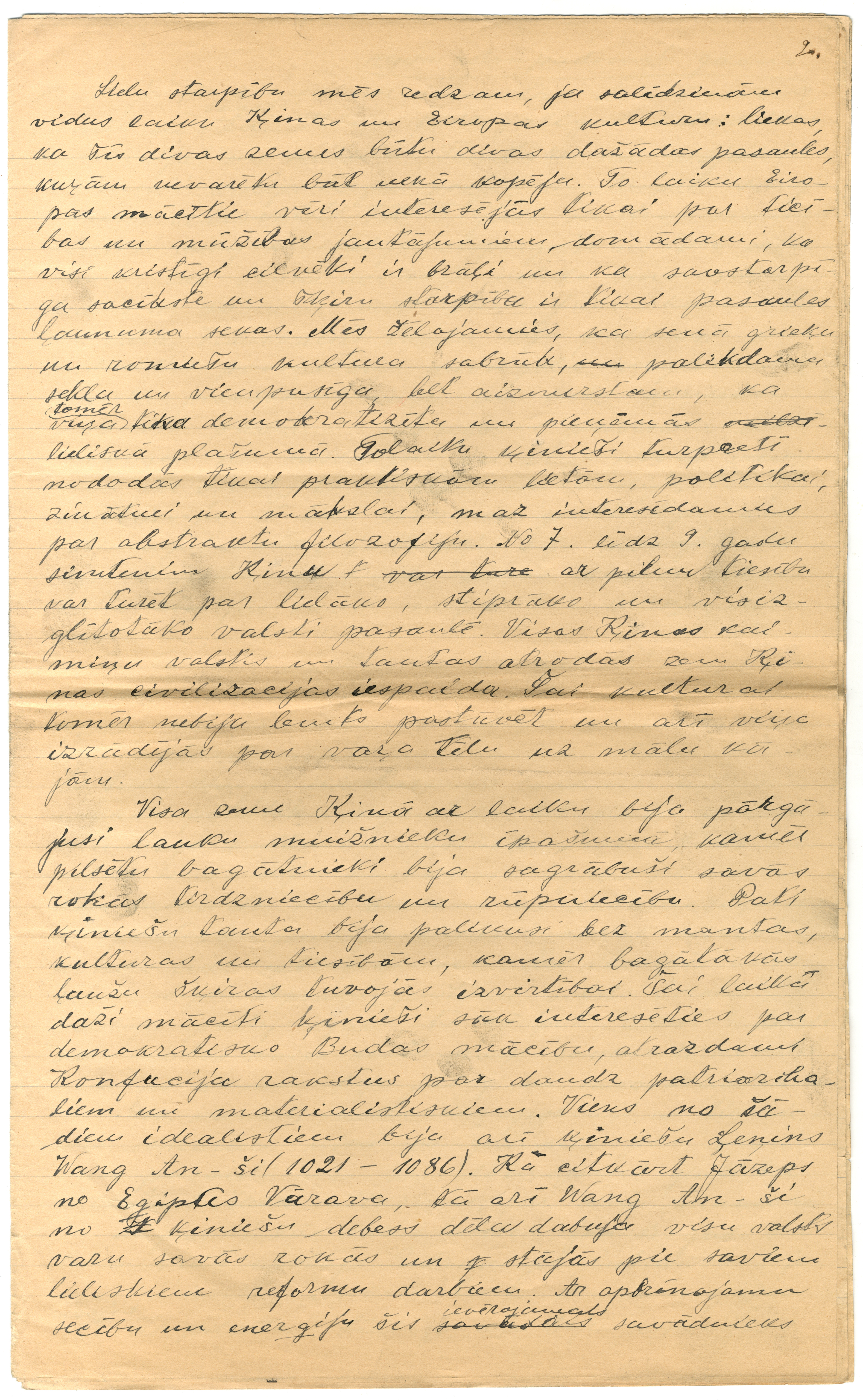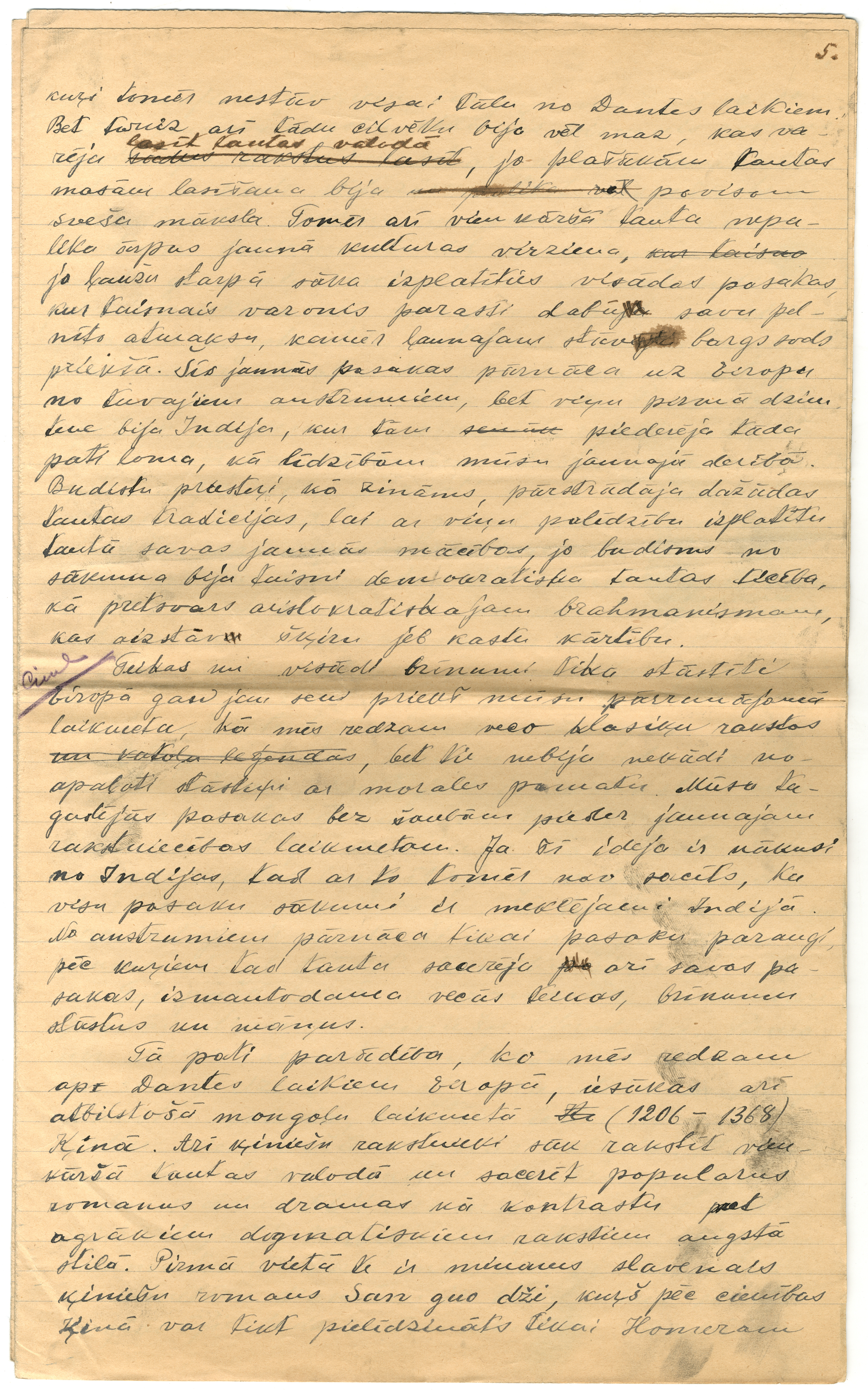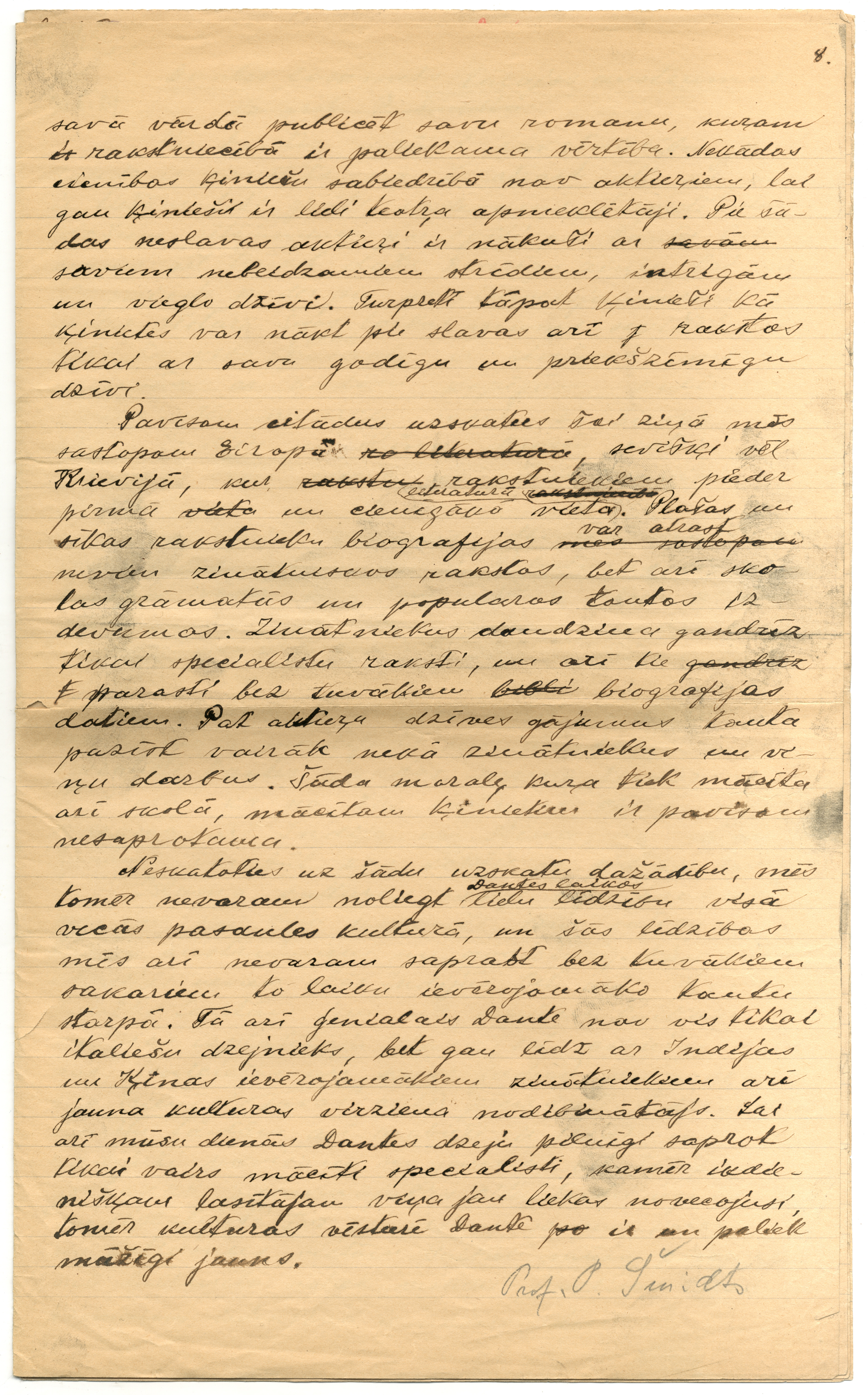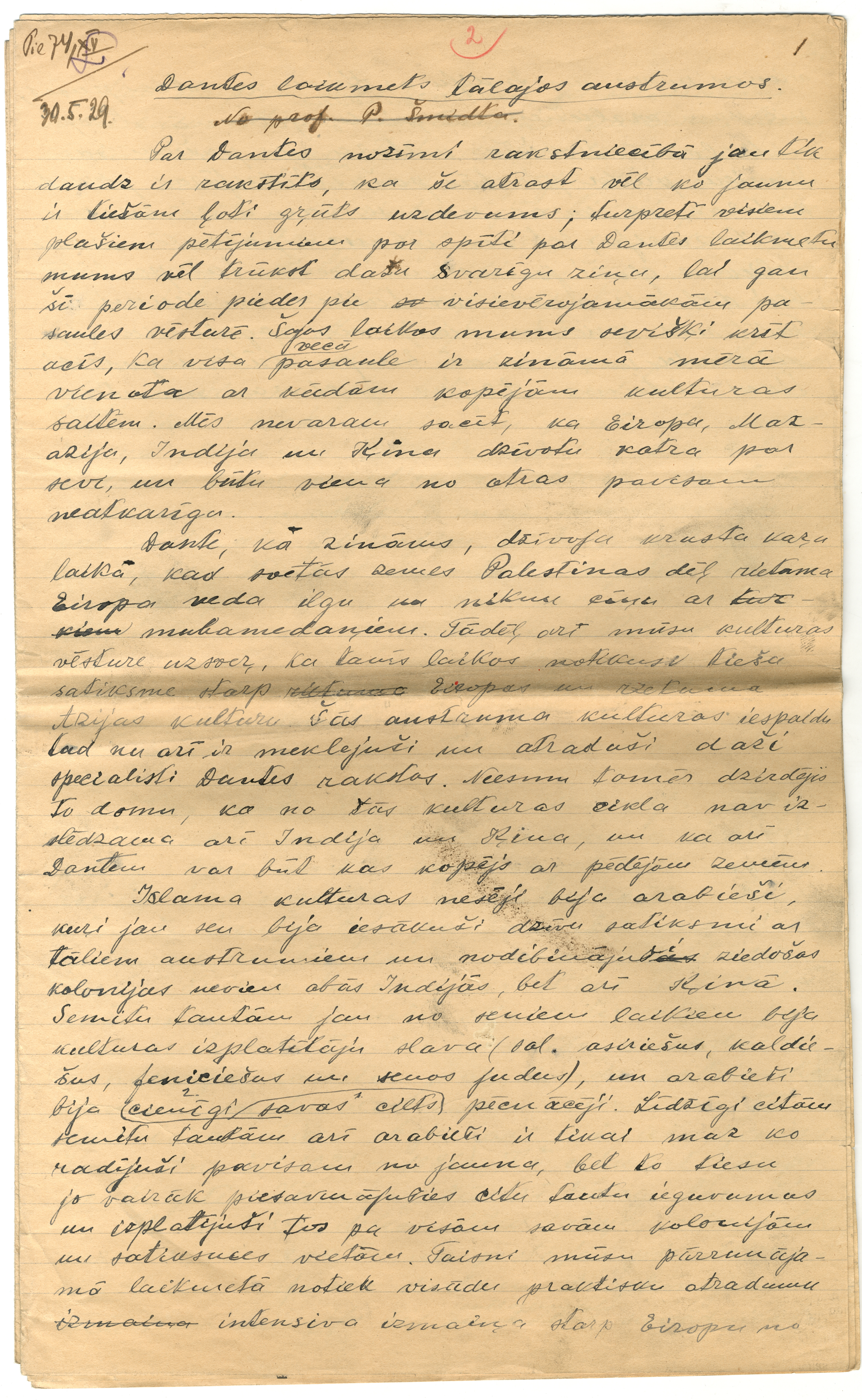 P. Šmita rokraksts "Dantes laikmets tālājos austrumos". [Rīga, 1921]. 9 lp.
