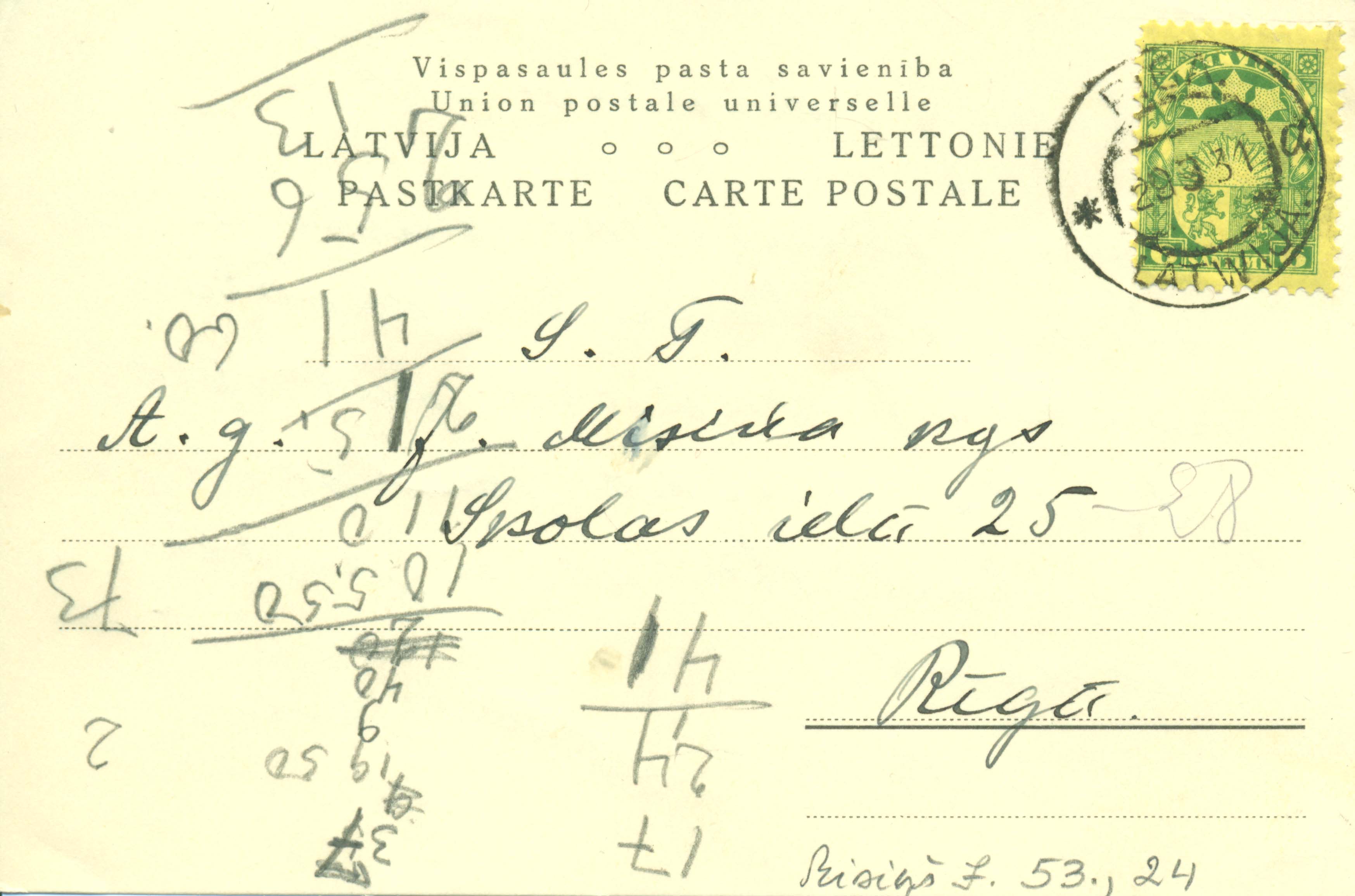 Pētera Šmita atklātnes Jānim Misiņam par Rīgas Latviešu biedrības Zinību komisijas sēdēm