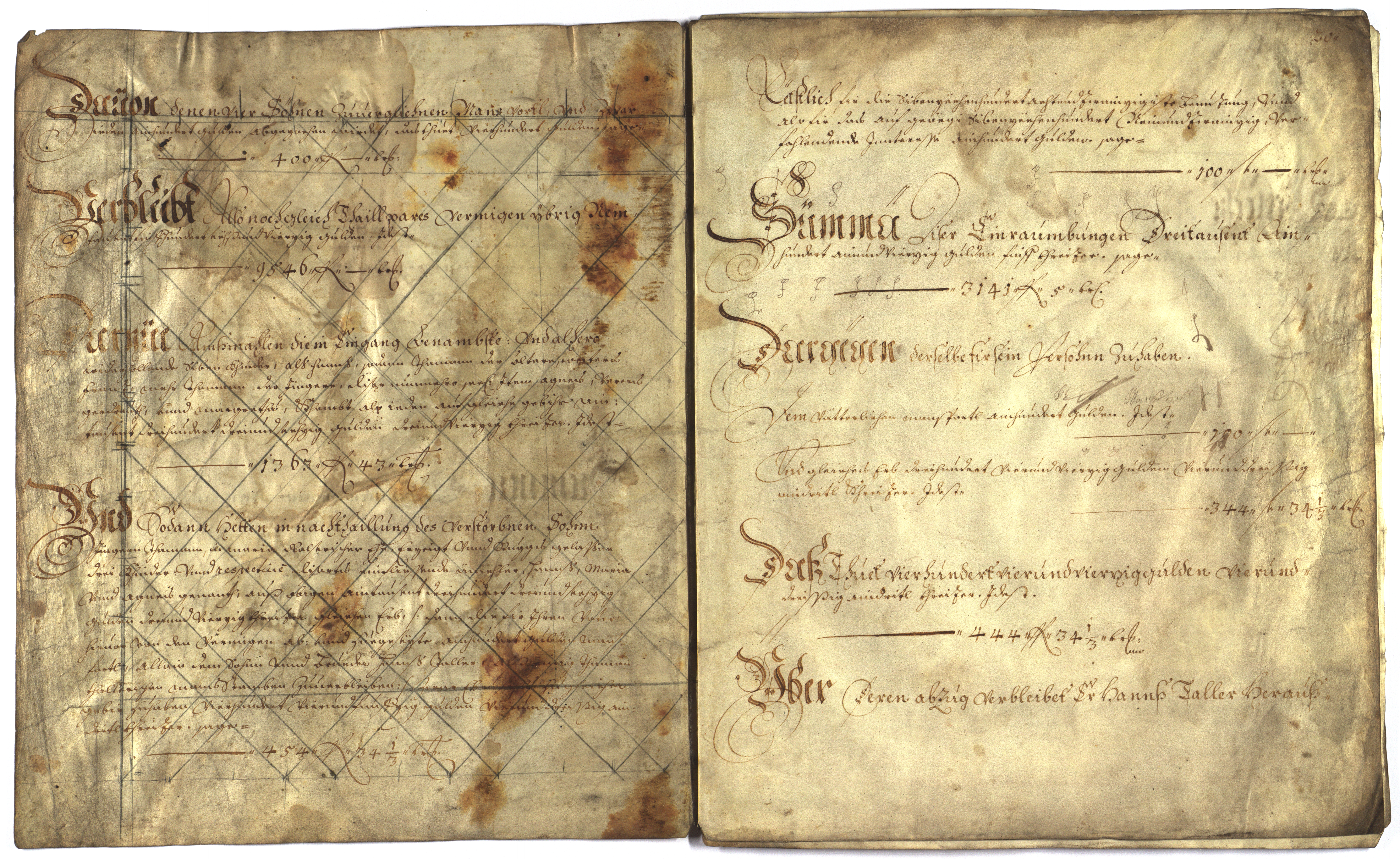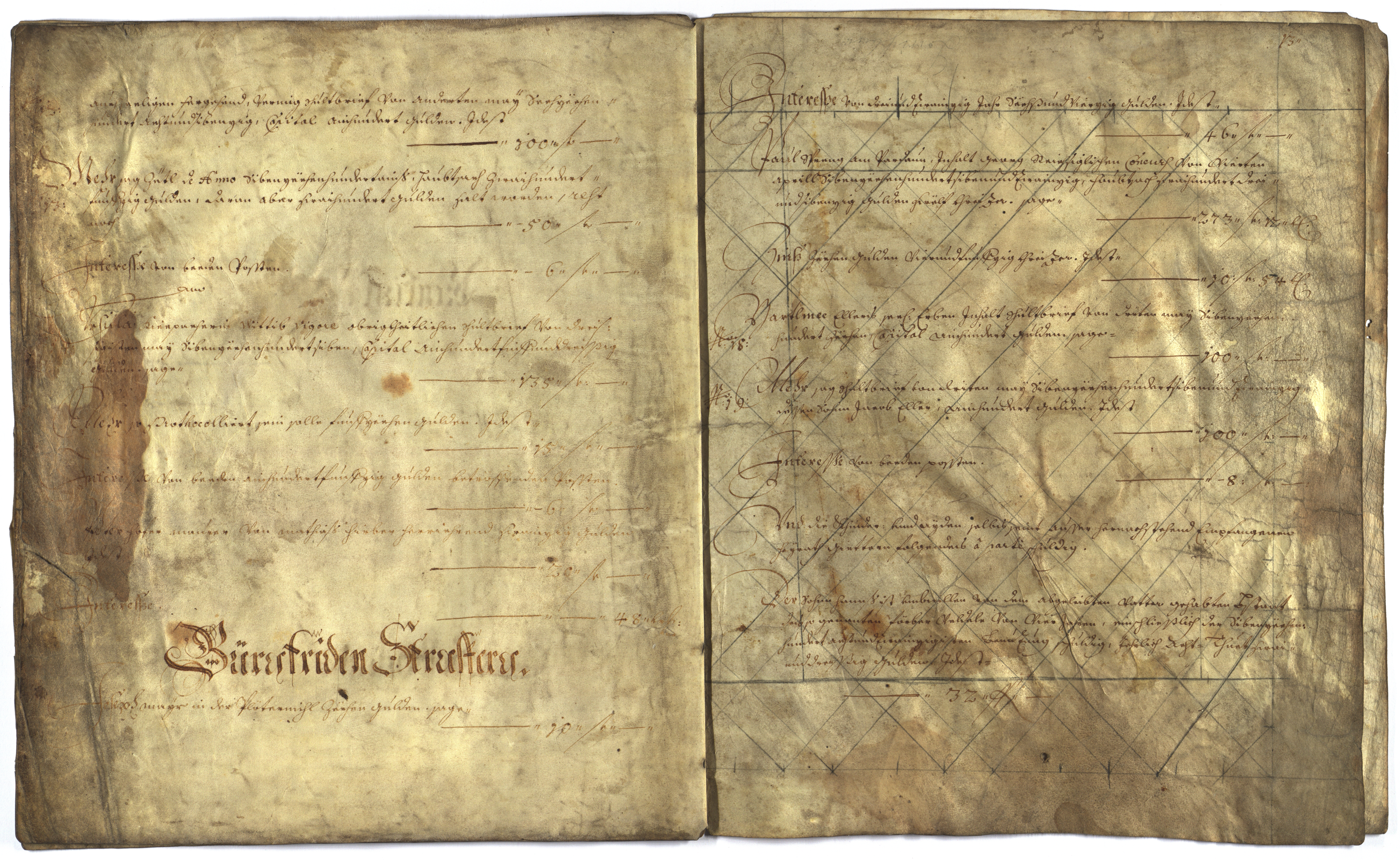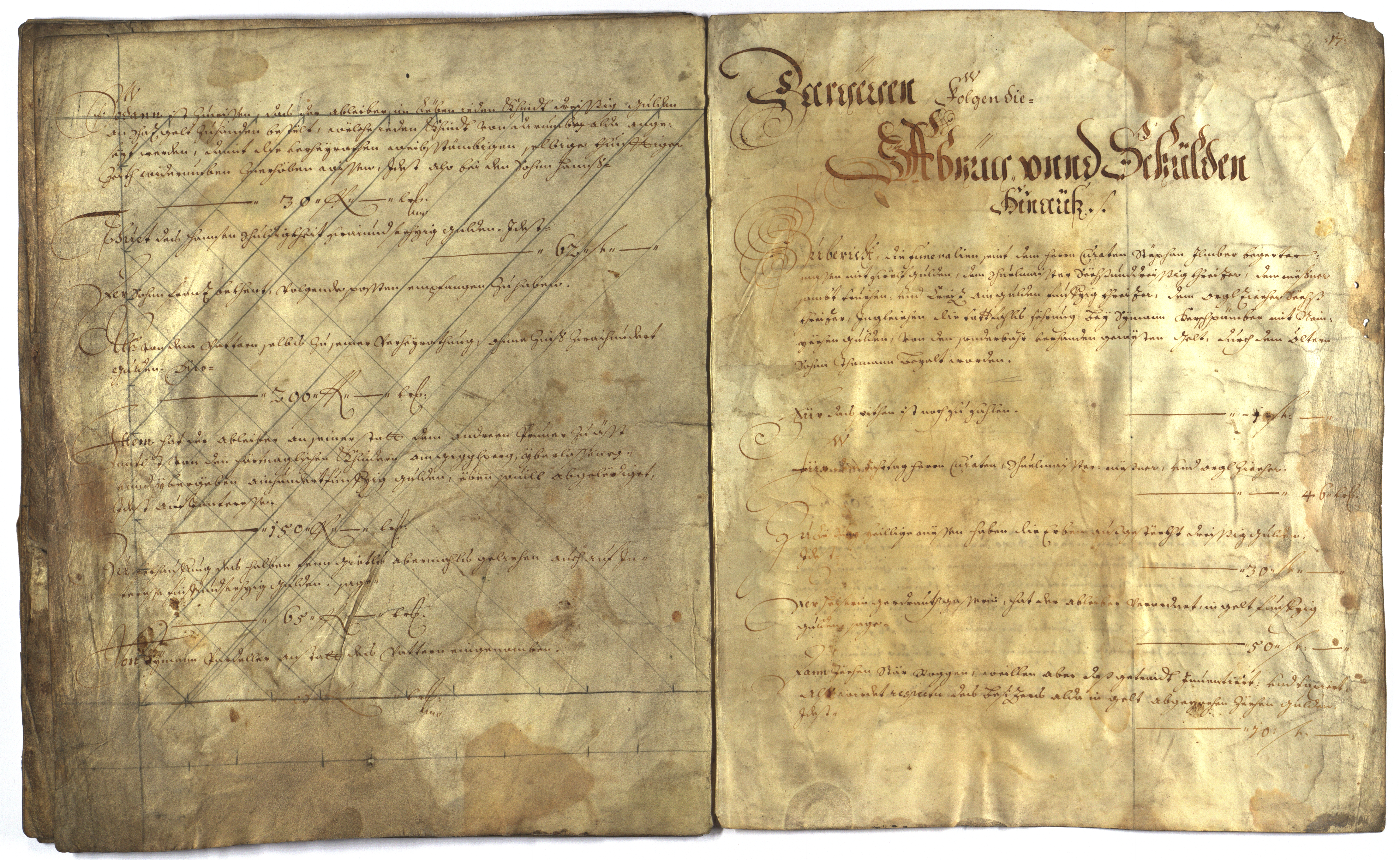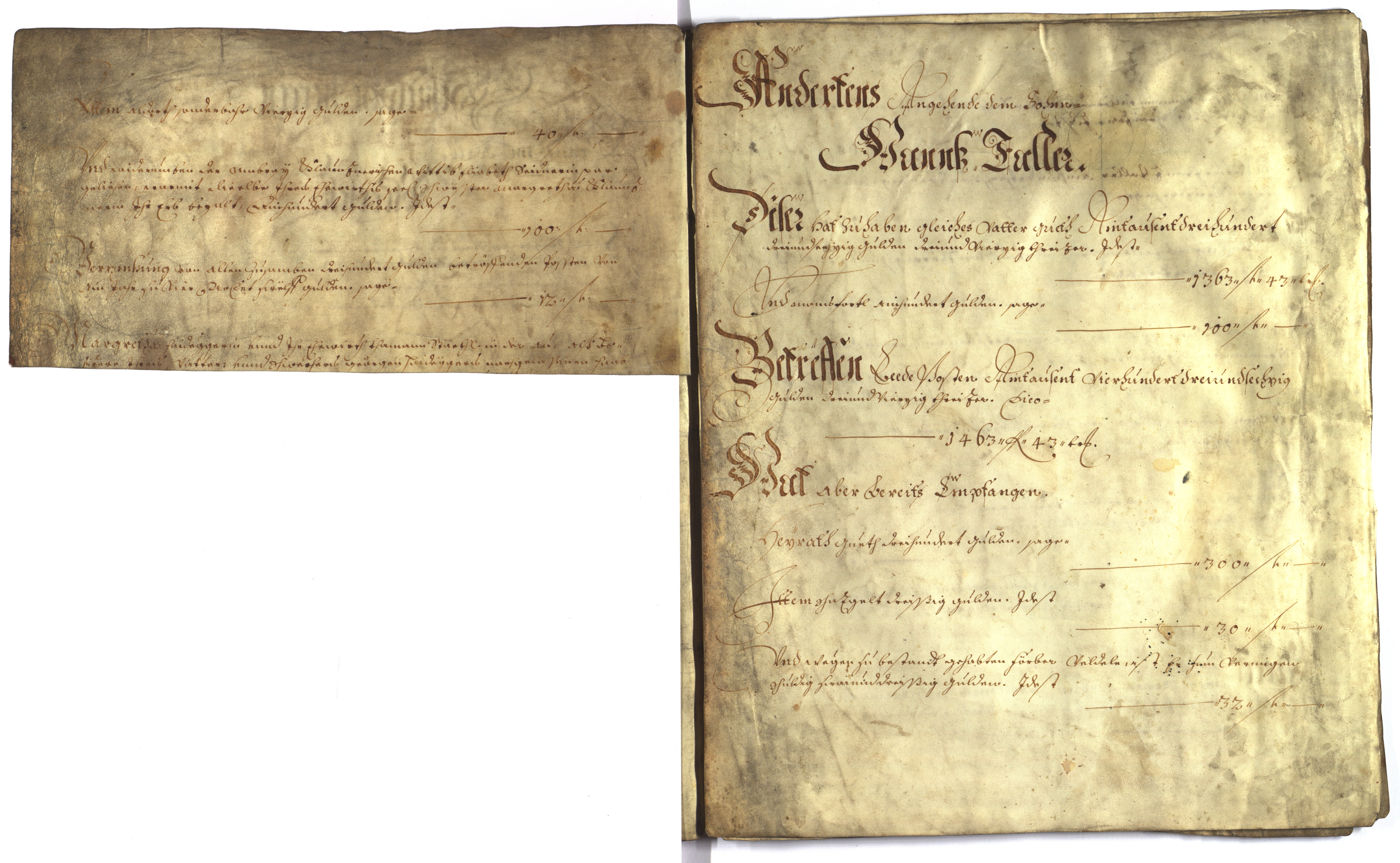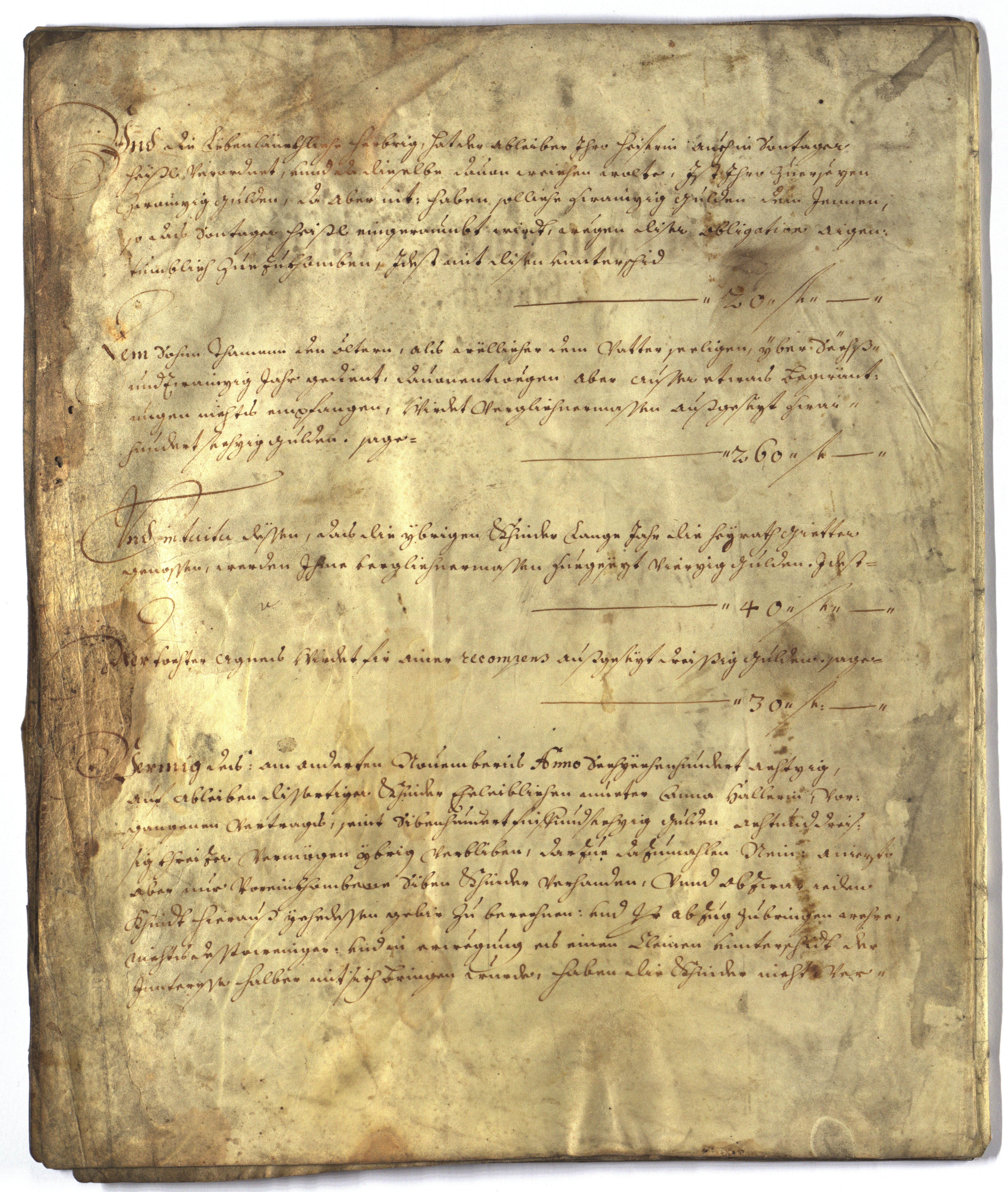 [Parādu grāmata] [rokraksts] : [pergaments : teksta fragments]. Vācija, [16.-17. gs.]. 8 lp. (16 lpp.) : pergaments, 8 lapas 29x35 14, 1 lapa 8x39,7 cm