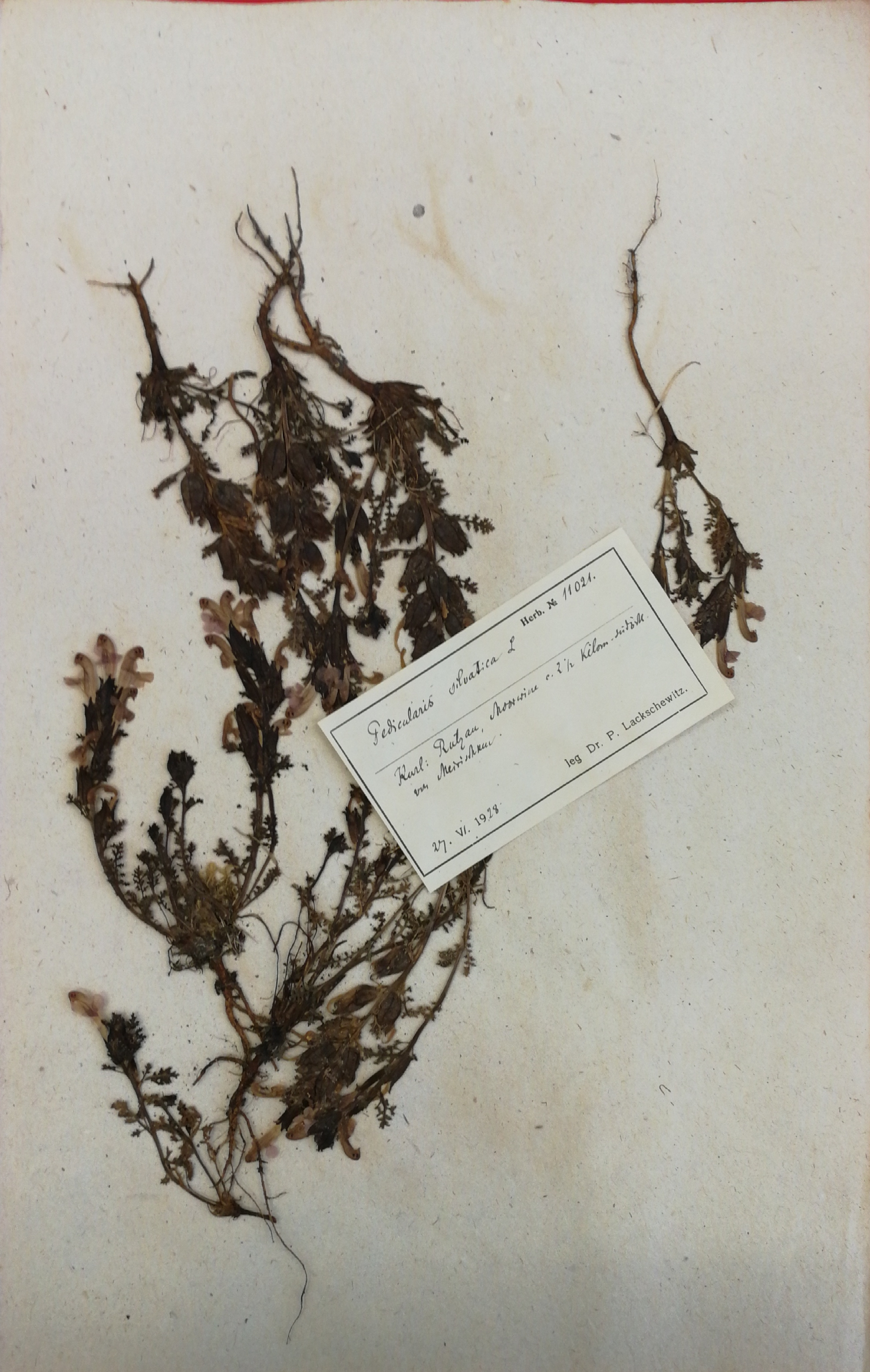 Die Exikte des Wald-Läusekraut, die 1928 in Rucava Paul Lackschewitz gesammelt wurden. /