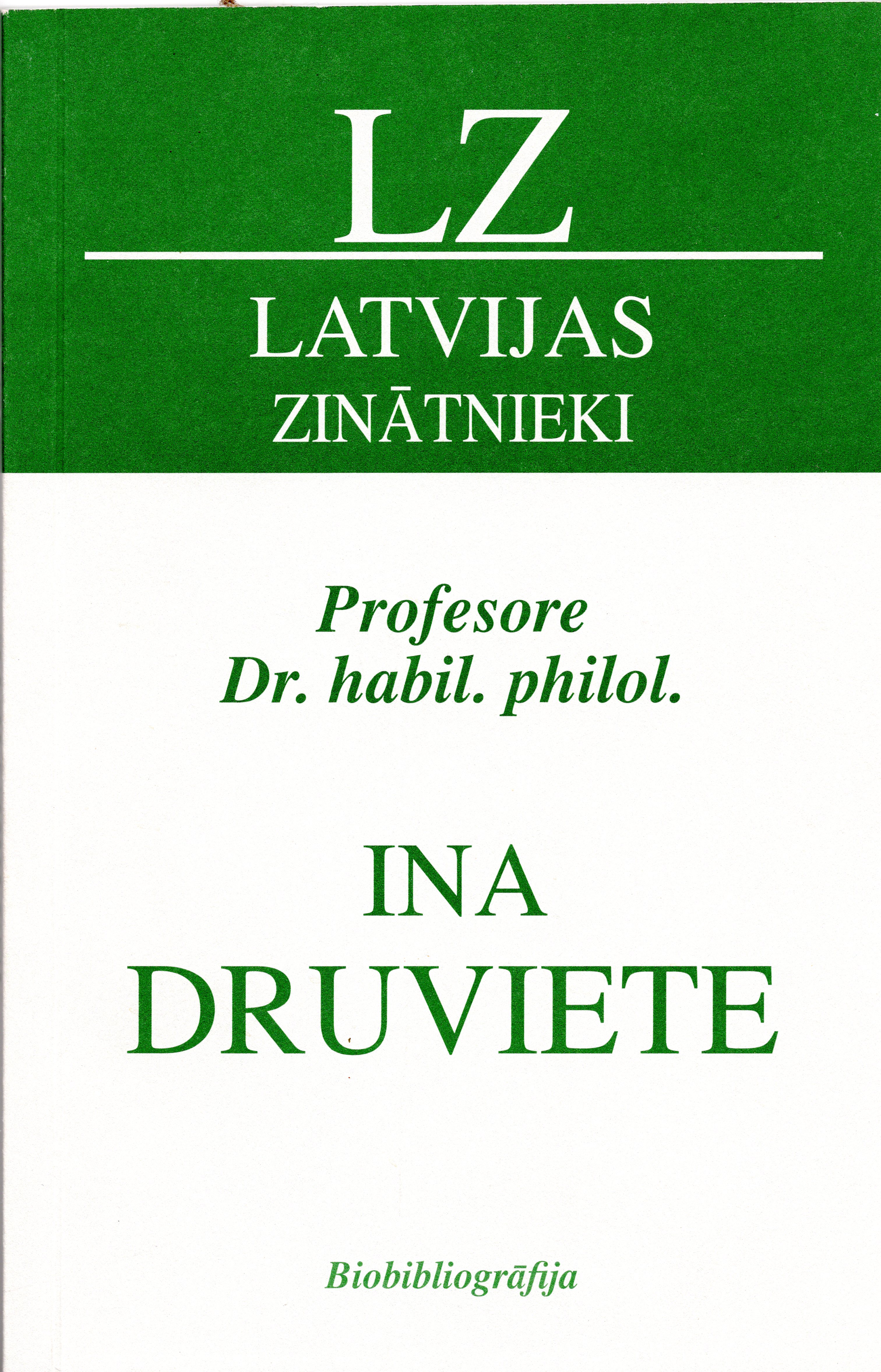 Valodnieces, LU profesores, Latvijas Zinātņu akadēmijas īstenās locekles Inas Druvietes biobibliogrāfija aptver laika posmu no 1982. gada līdz 2008. gada vasarai