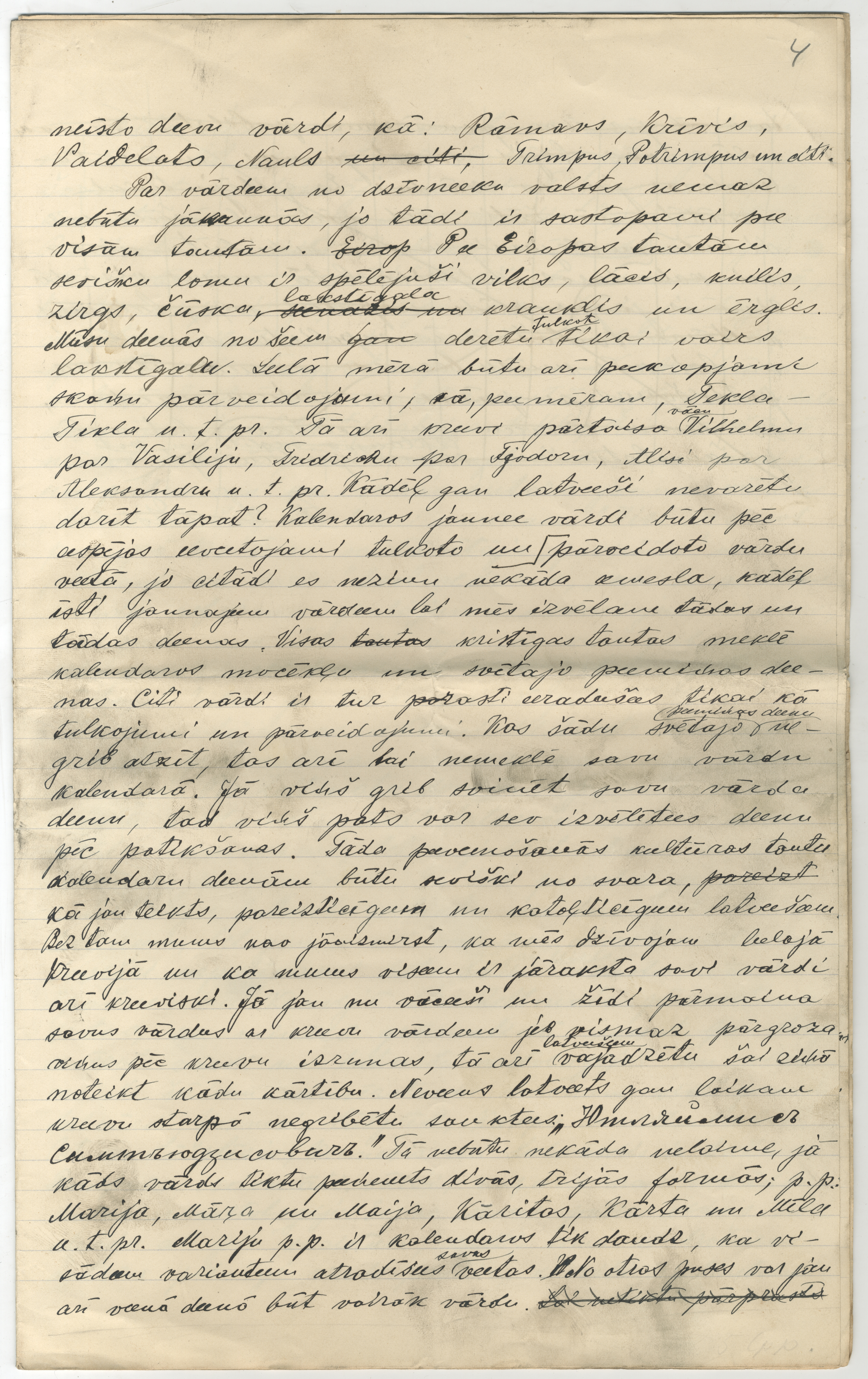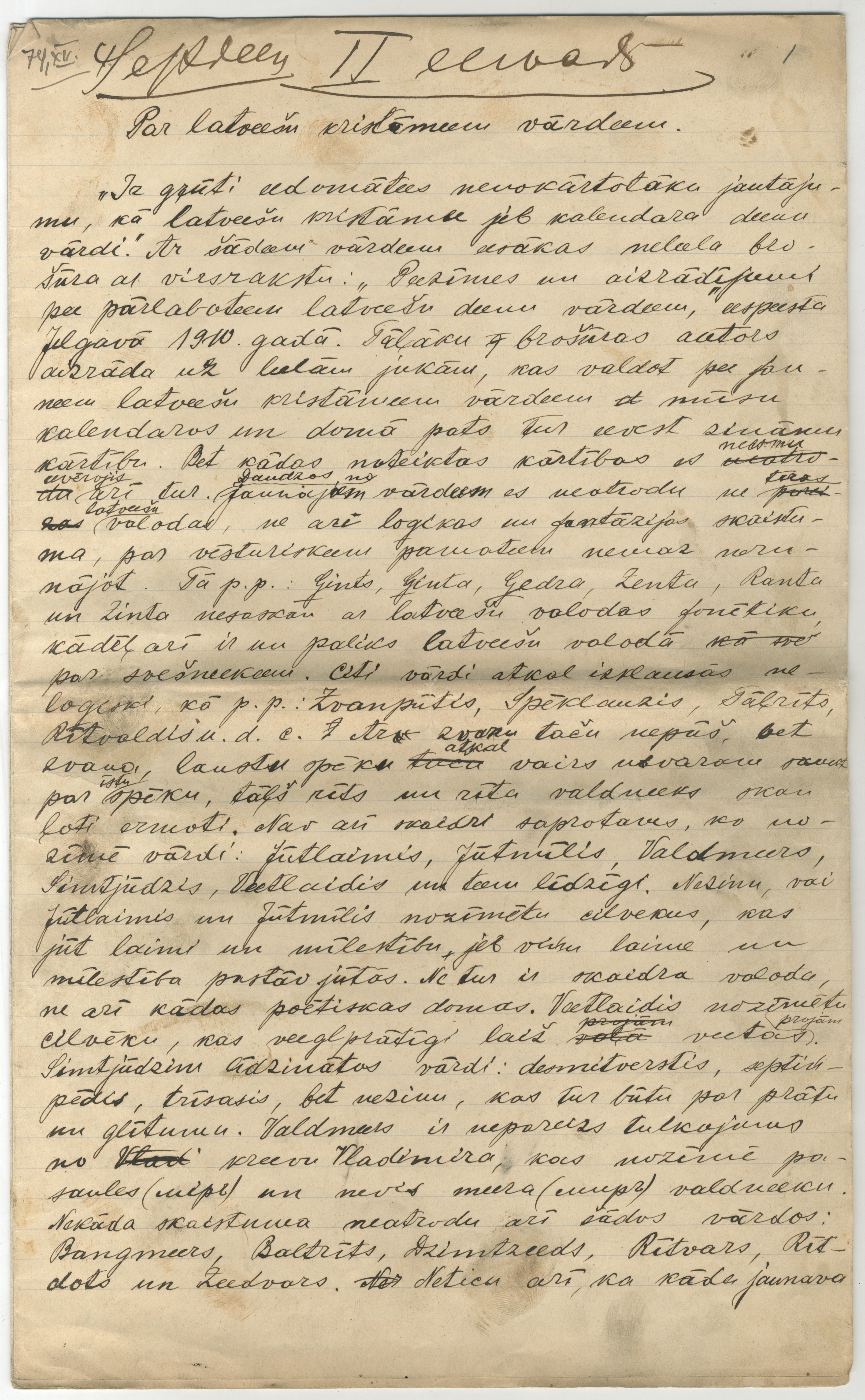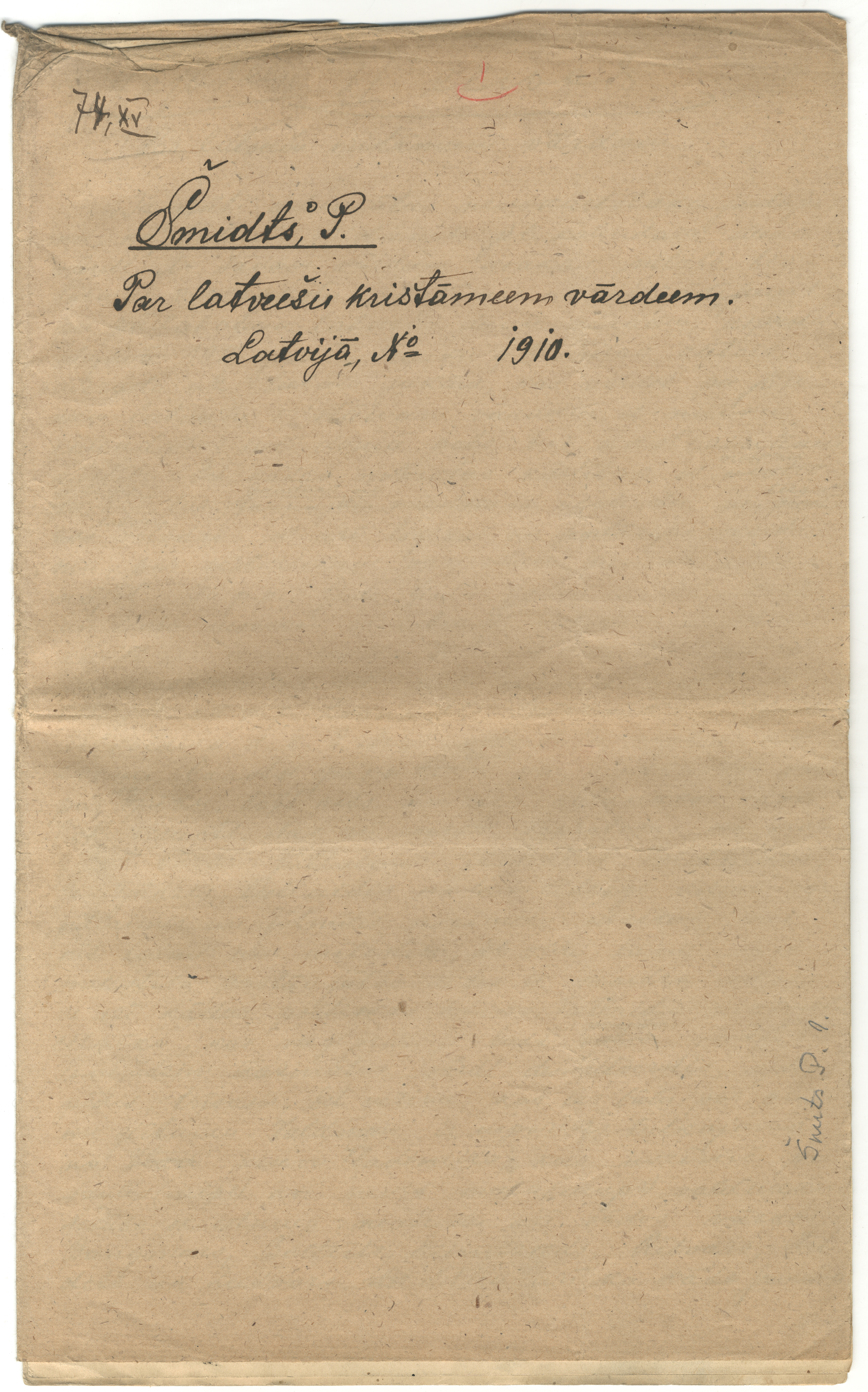 P. Šmita rokraksts "Par latviešu kristāmiem vārdiem". [B.v.], 1910. 8 lp.