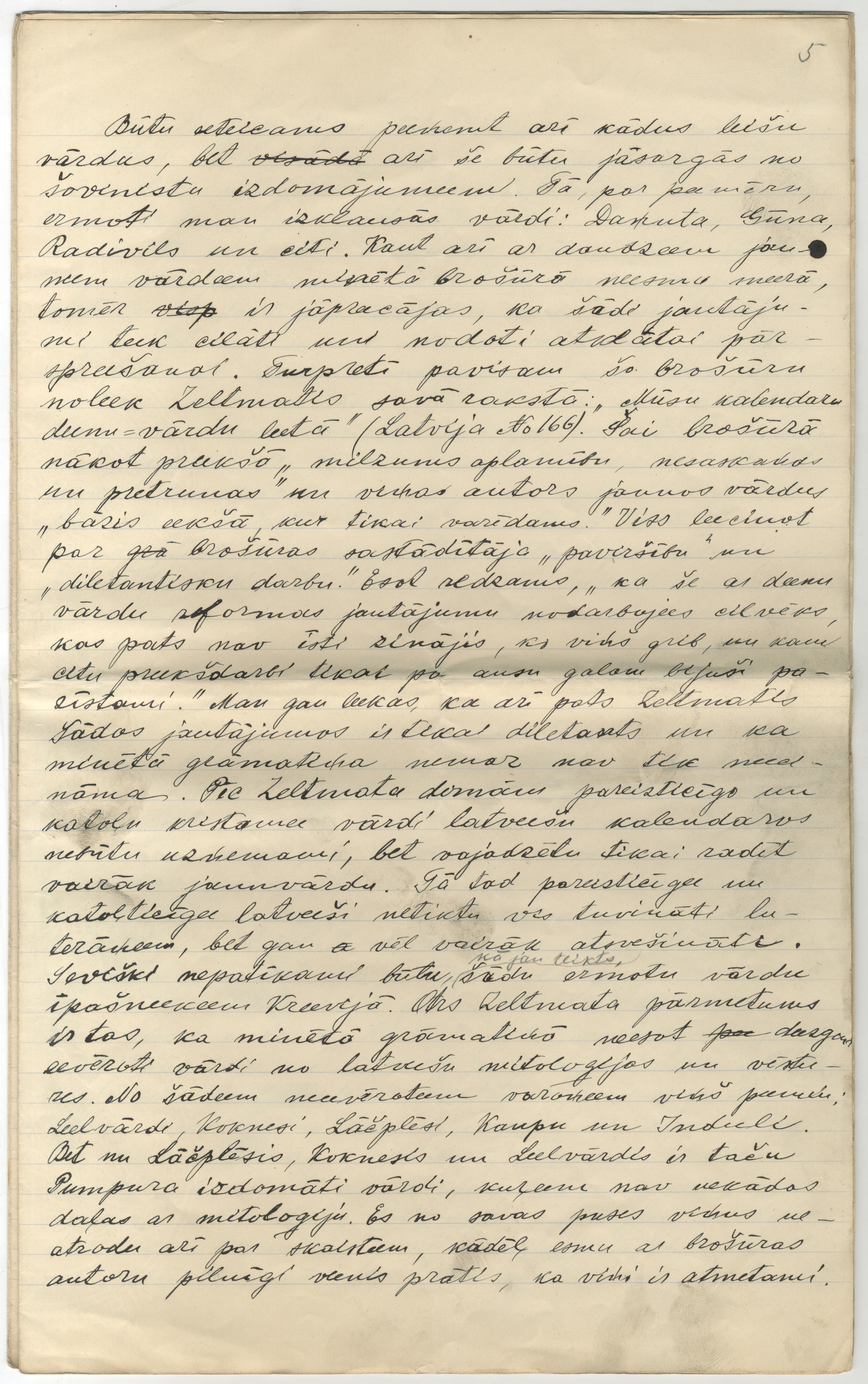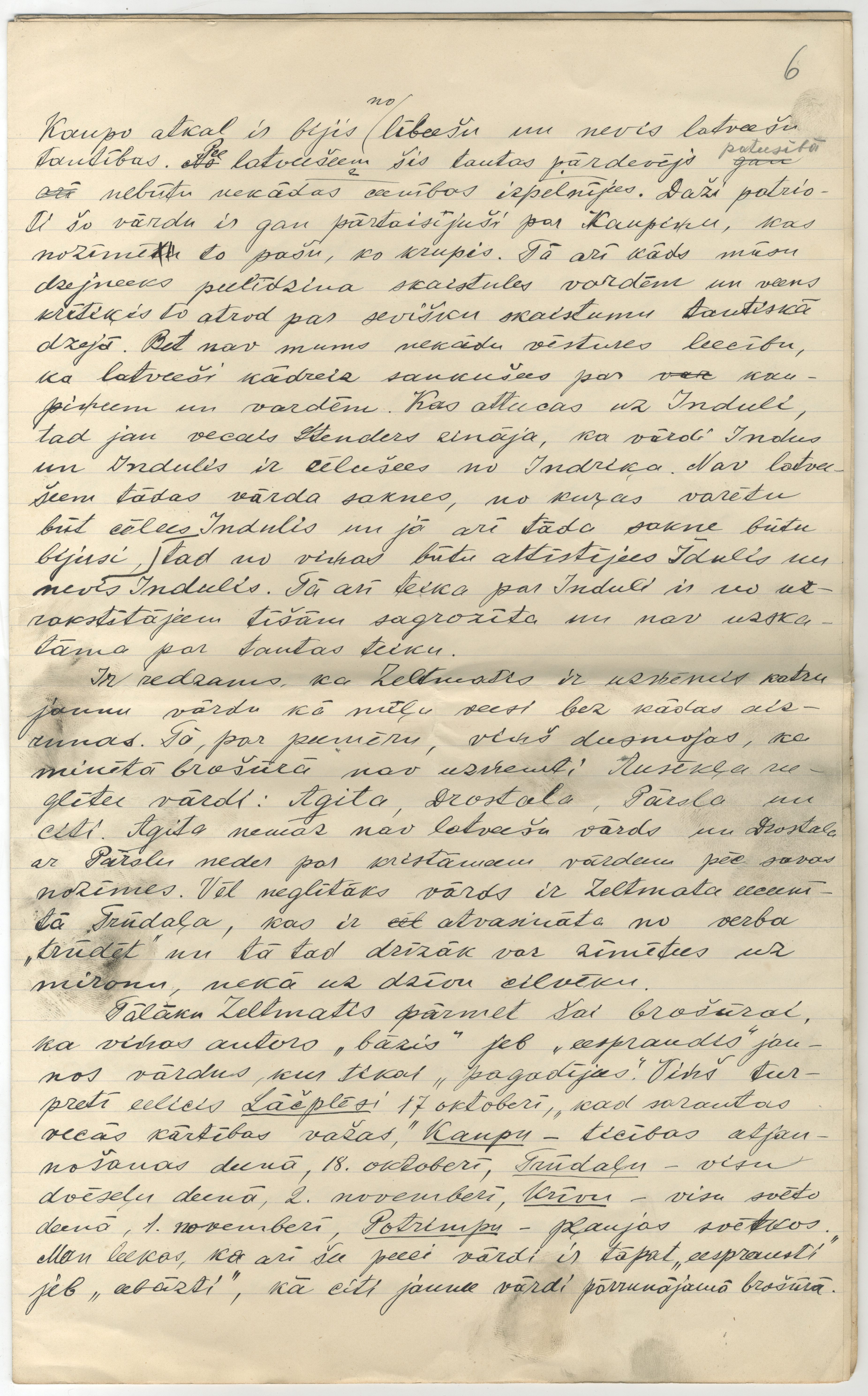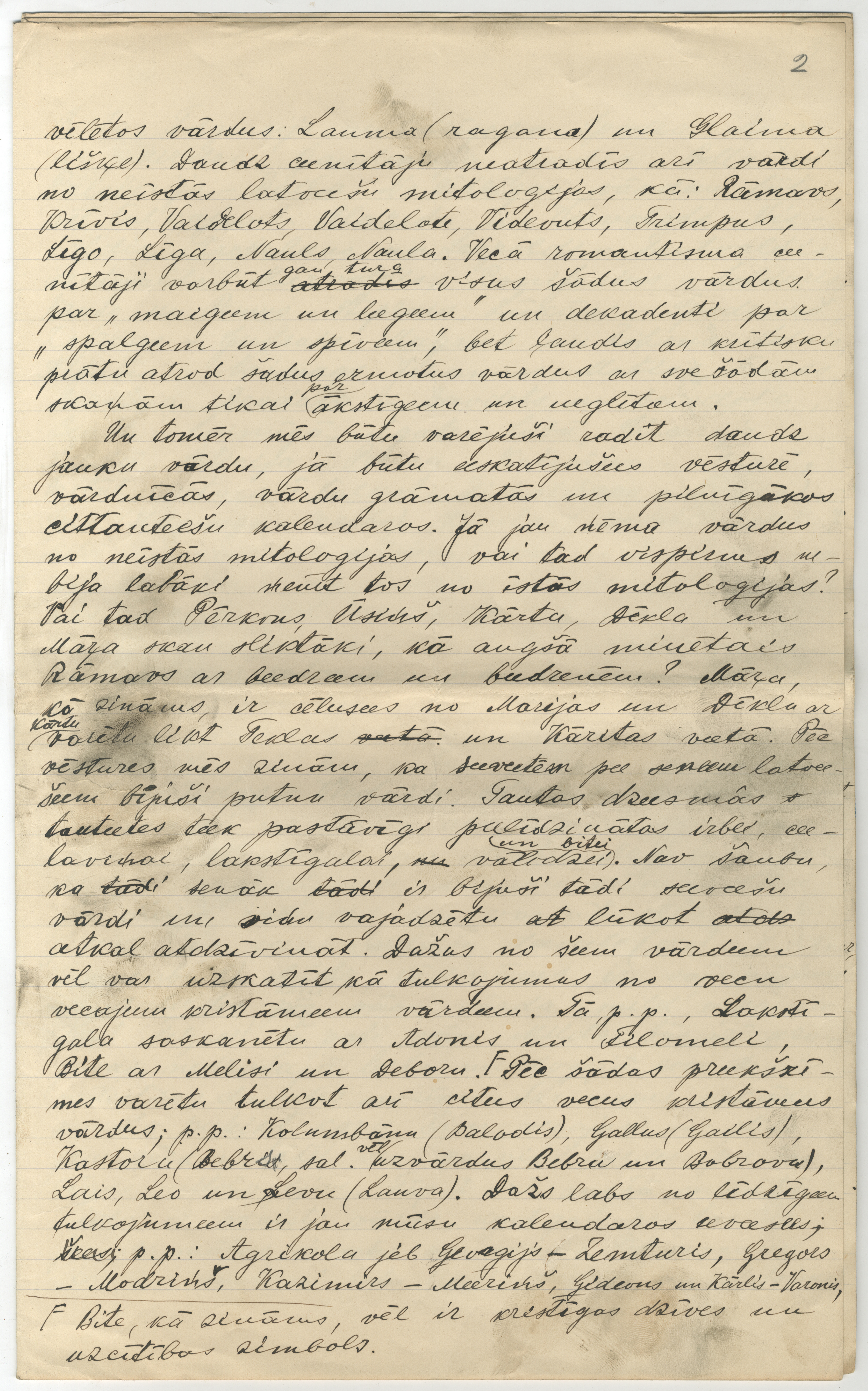 P. Šmita rokraksts "Par latviešu kristāmiem vārdiem". [B.v.], 1910. 8 lp.