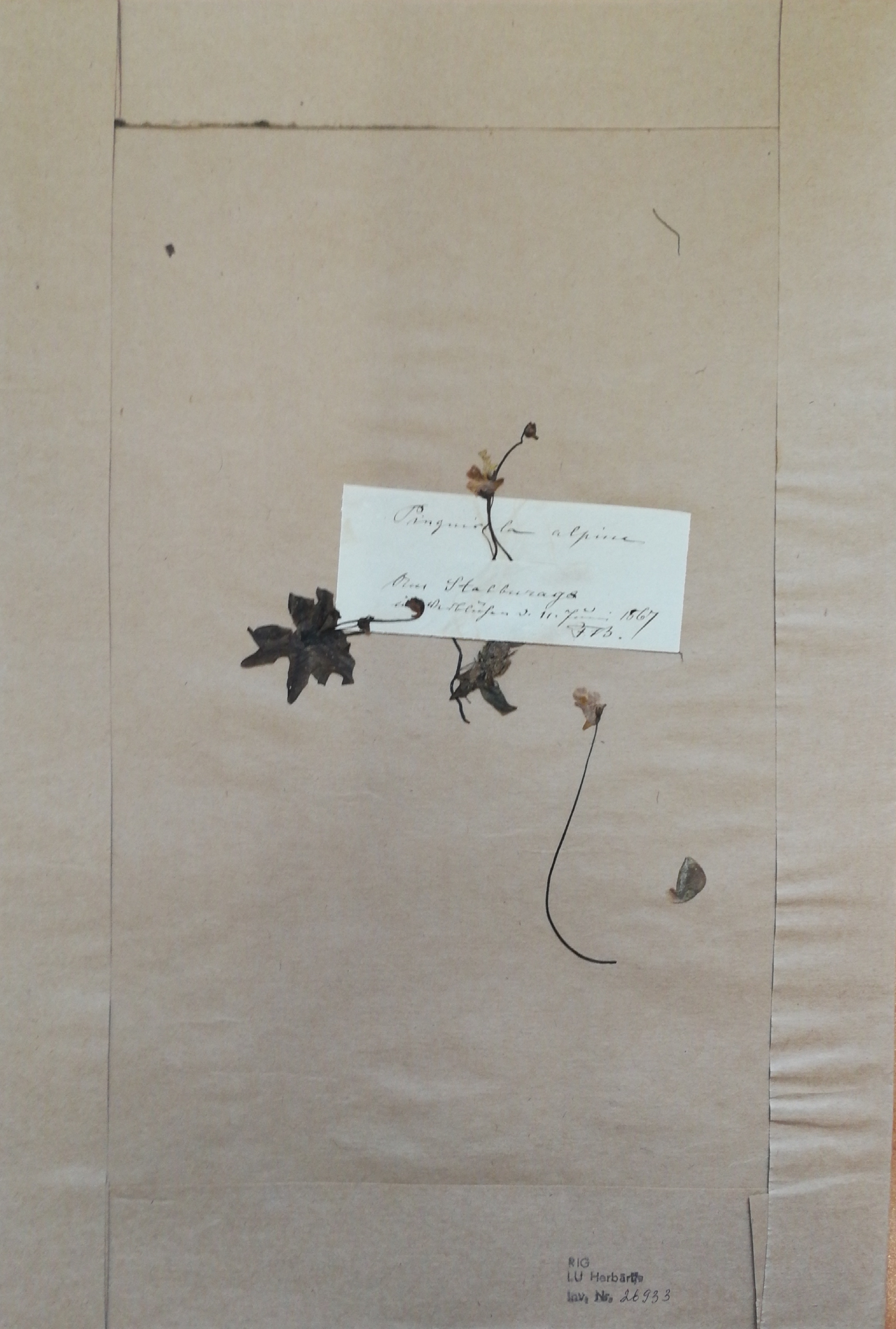 Senākais Pinguicula alpina L. paraugs Latvijā