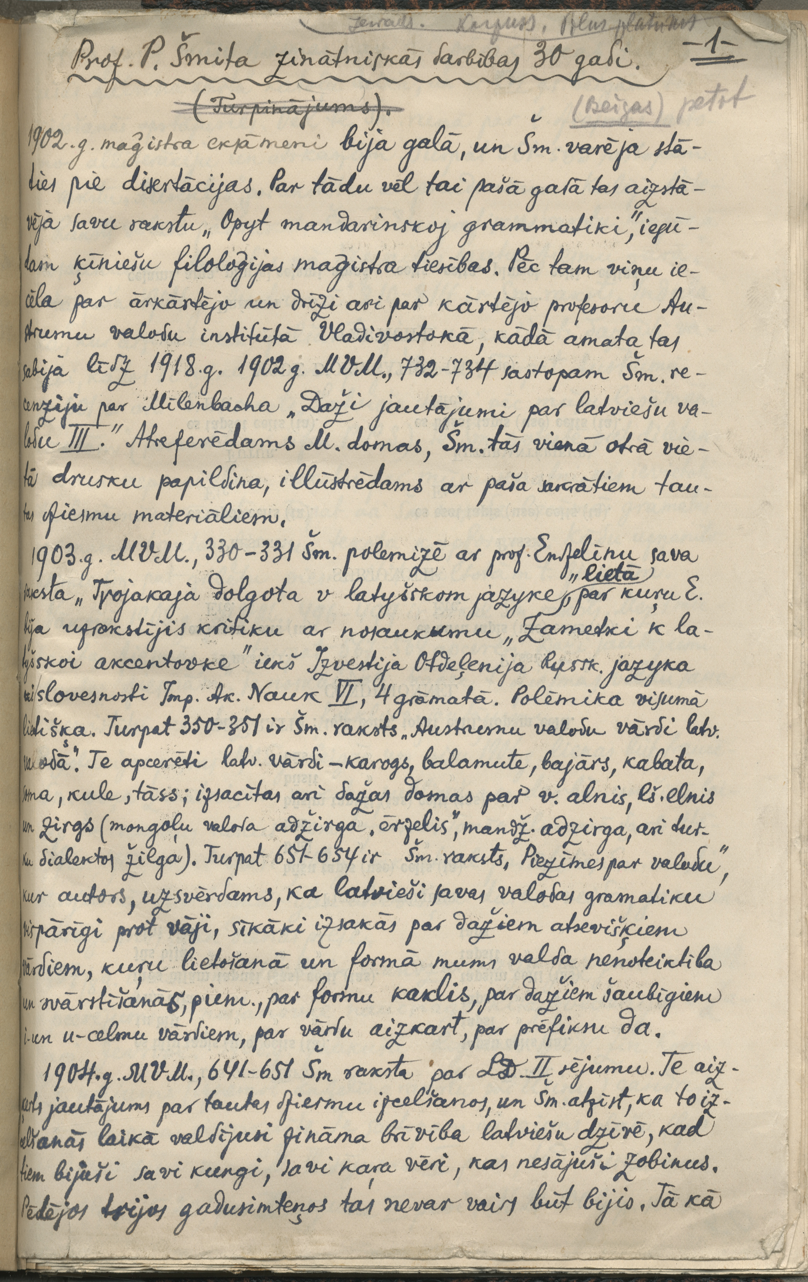 Blese Ernests. Prof. P. Šmita zinātniskās darbības 30 gadi : rokraksts. Rīga, 1928. 22 lp.