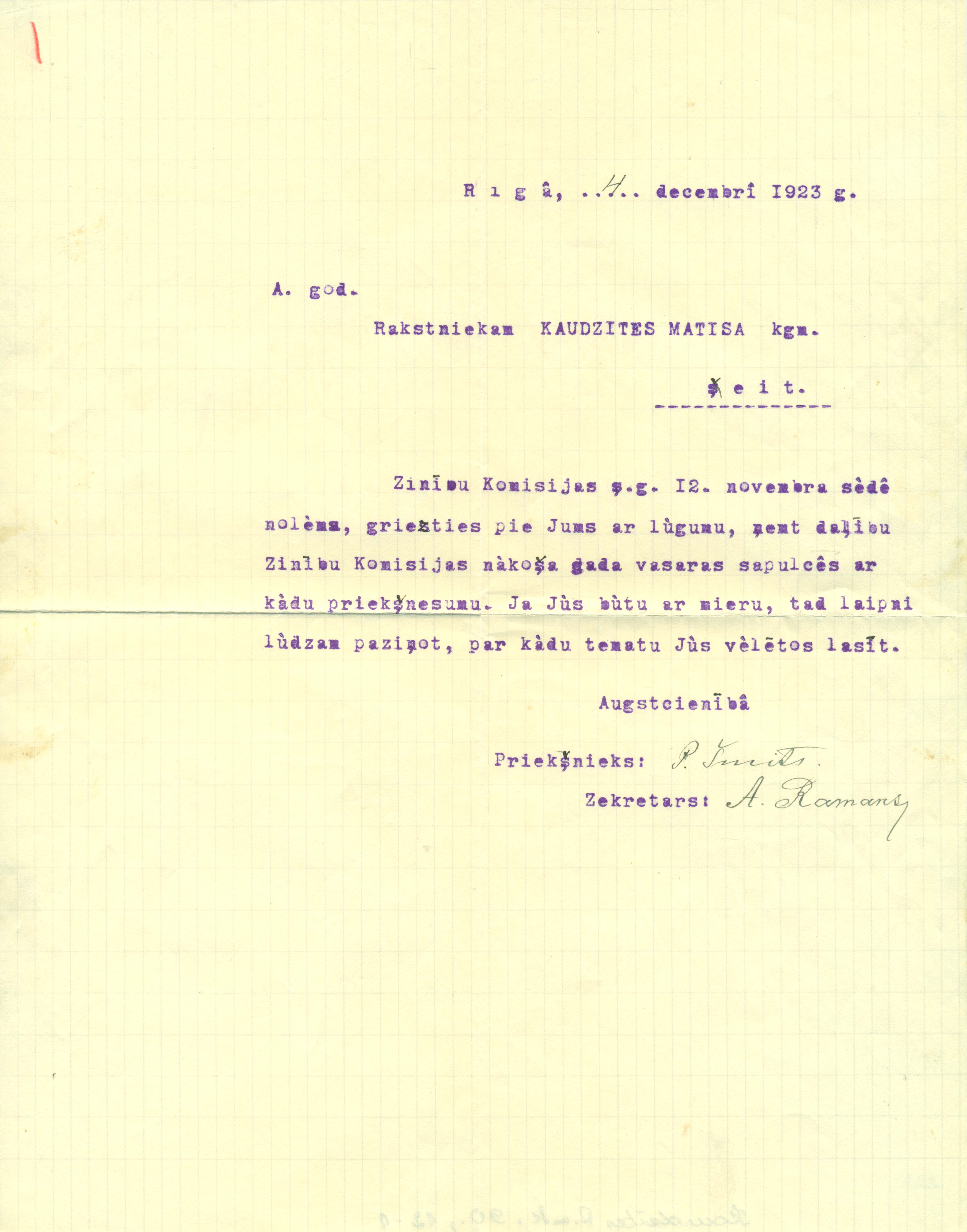 | dc.identifier.citation | Pētera Smita vēstule rakstniekam Matīsam Kaudzītem. Rīga, 1923, 1 lp. | en_US |
