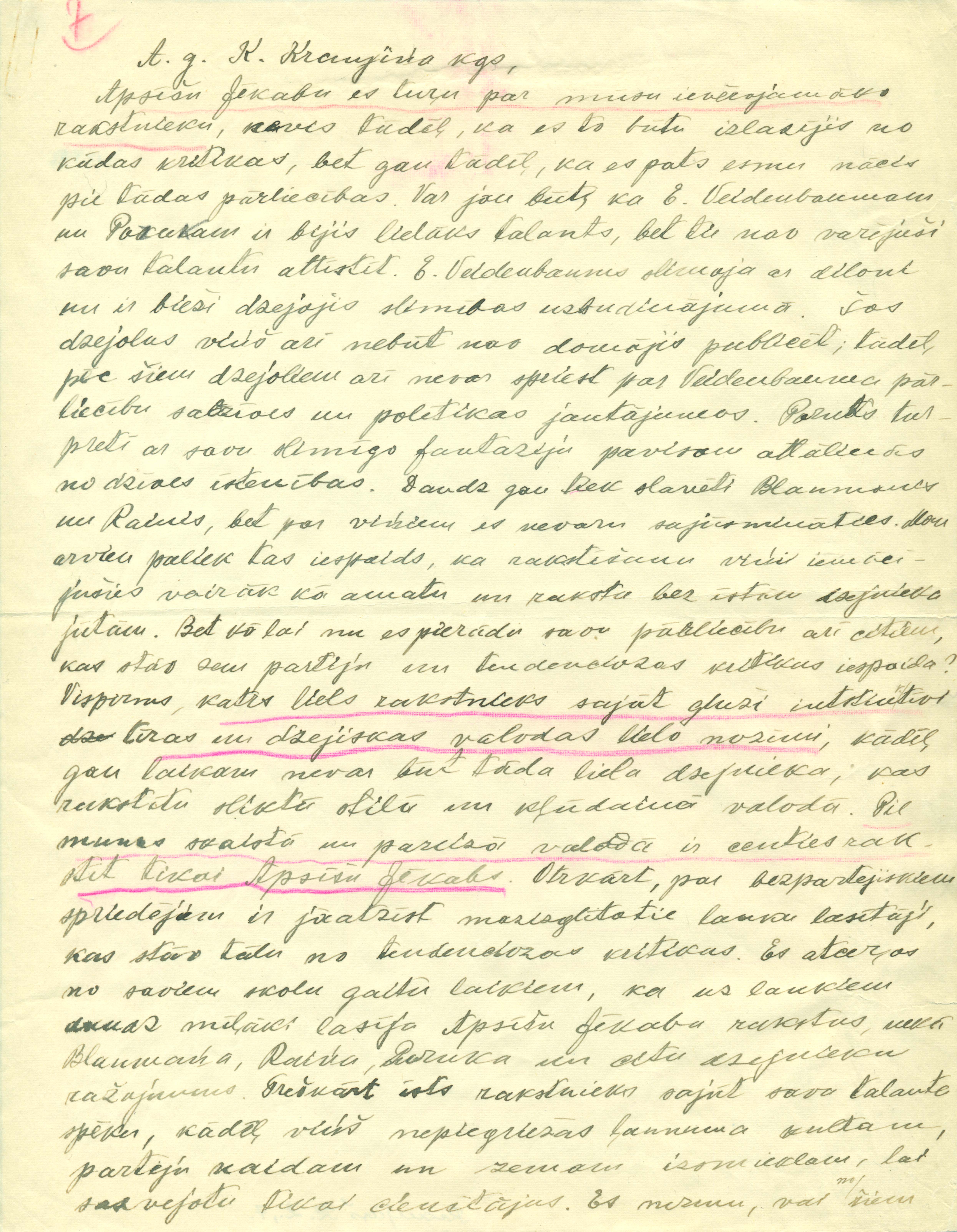 Pētera Šmita vēstule Kārlim Kraujiņam. Rīga, 1930. 2 lp.