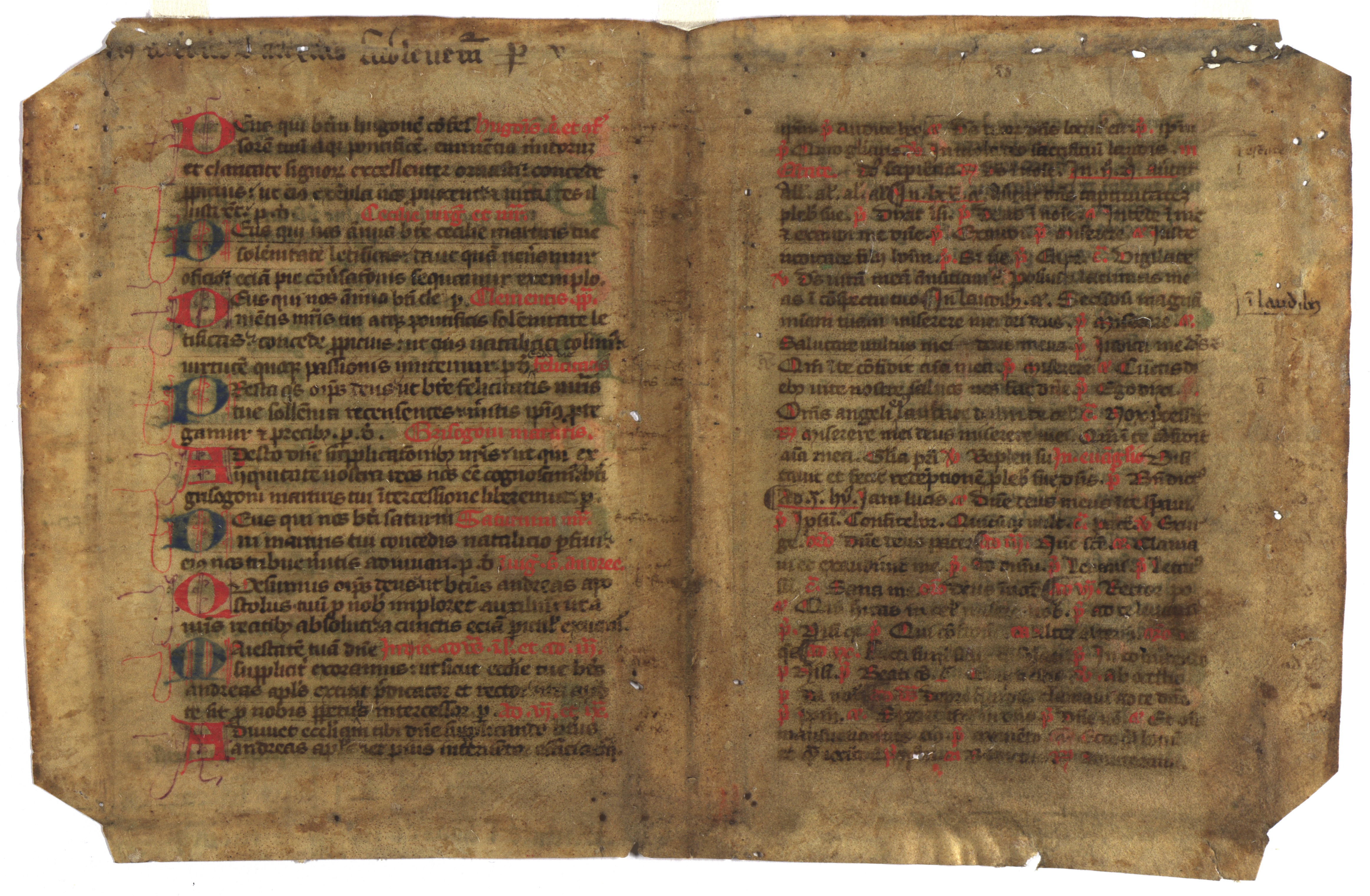 [Svētajiem veltīta lūgšana] [rokraksts] : [pergaments : teksta fragments]. [B. v., 14.-15. gs.]. 1 lp. : pergaments, 28,5x18,5 cm
