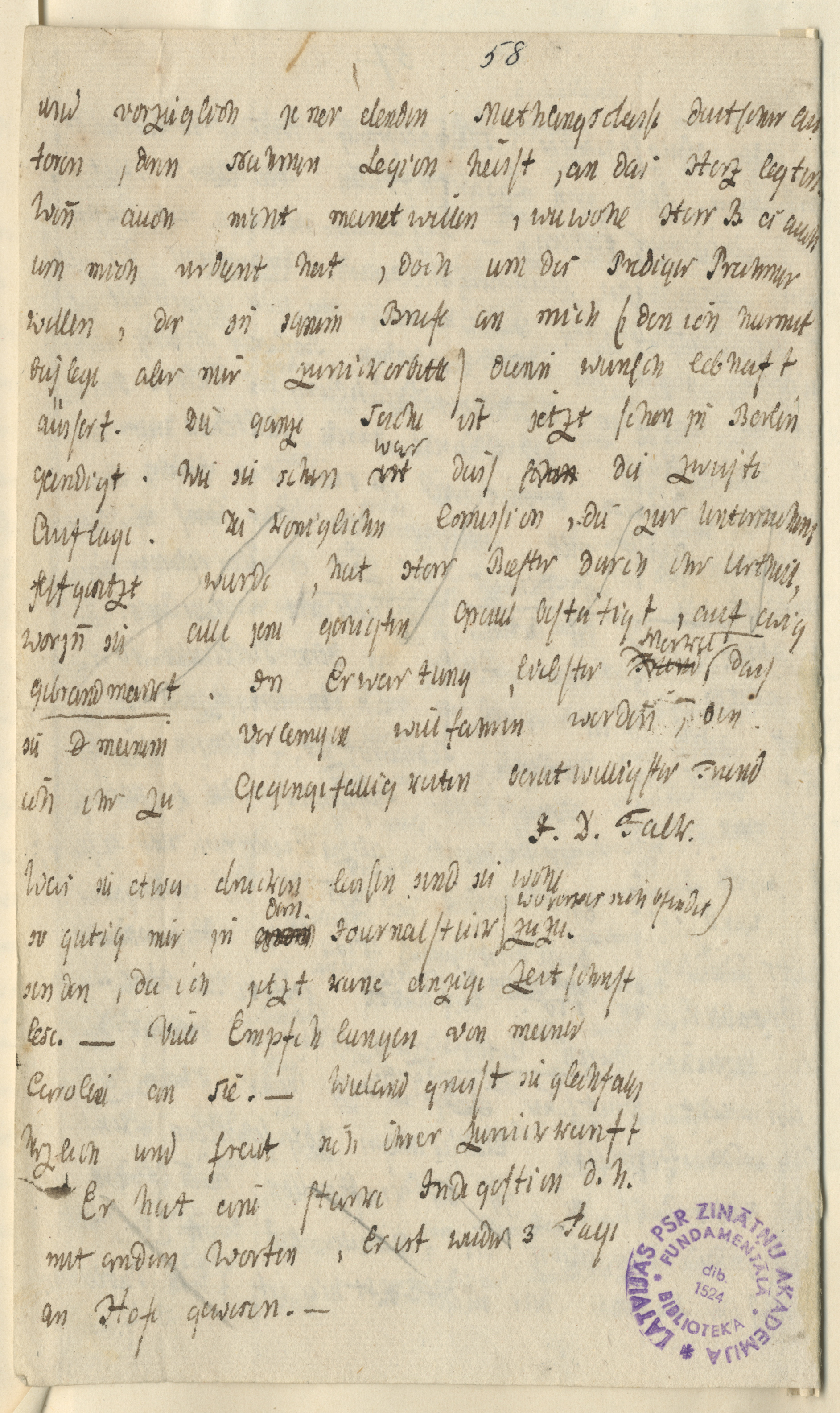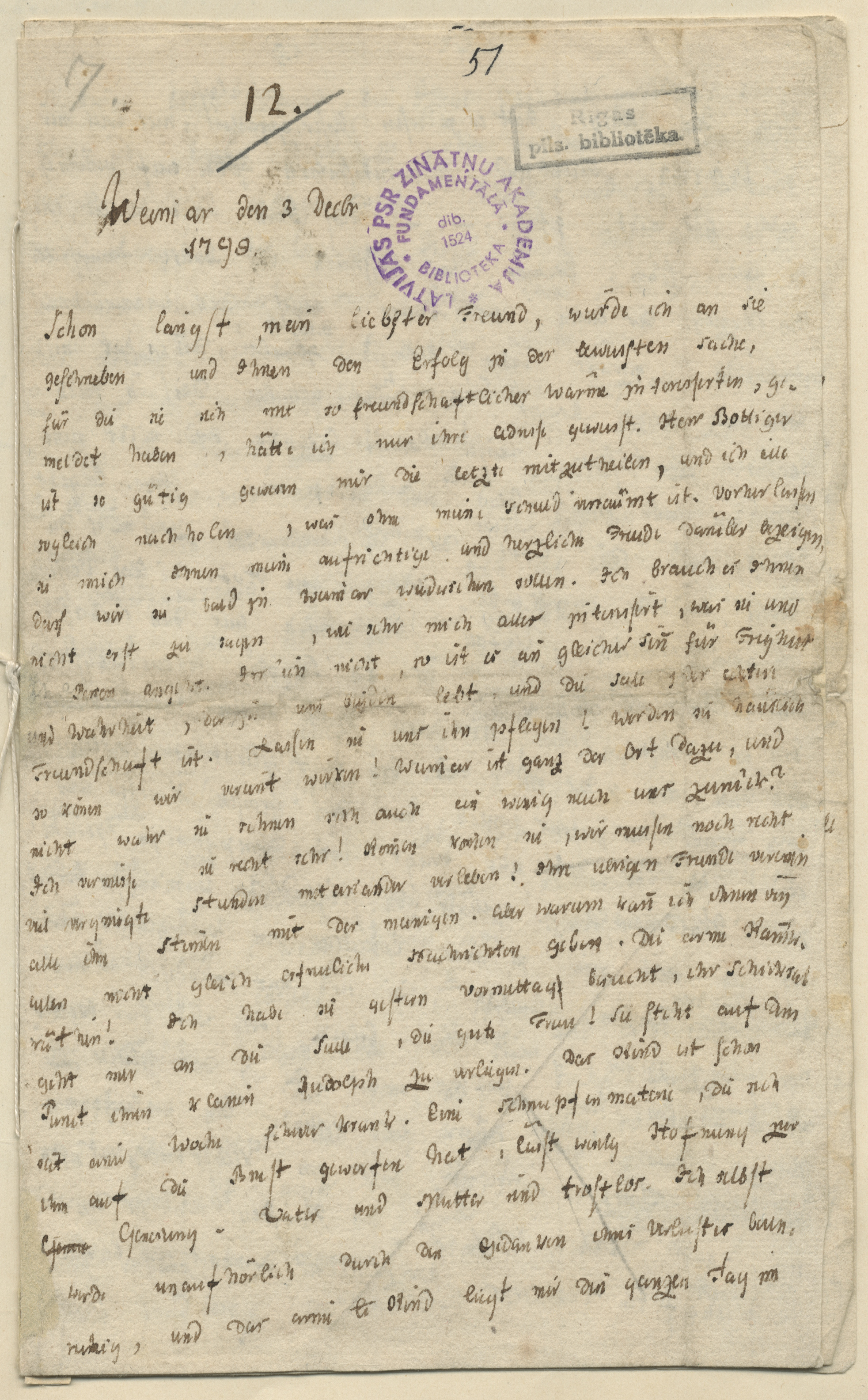 Research Subject Categories::HUMANITIES and RELIGION, Apgaismības laikmets, Aufklärung, Literatur, literatūra, Merkel Garlieb Helvig (1769-1850), Merķelis Garlībs Helvigs (1769-1850), Freiheit und Wahrheit, brīvība un patiesība, Schnupfenmaterie, iesnas, Weimarer Hof, Veimāras galms, Sander’sche Buchhandlung, J[…]sche Buchhandlung, grāmatu tirdzniecība, Schmarotzer, liekēdis, Charité [Klinikum in Berlin], klīnika Berlīnē, Königliche Kommission, karaliskā komisija, Falk, Johann(es) Daniel (1768-1826), Böttiger, Karl August (1760-1835), Richter, Johann Paul Friedrich (auch Jean Paul, 1763-1825), Lesings Gotholds Efraims (1729-1781), Biester, Johann Erich (1749-1816), Herzogin von Sachsen-Weimar-Eisenach, Luise (1757-1830), Cotta von Cottendorf, Johann Friedrich (1764-1832), Sander, Johann Daniel (1759-1825), Prahmer, Wilhelm, Wieland, Christoph Martin (1733-1813), Falk, Caroline (1778-1841)