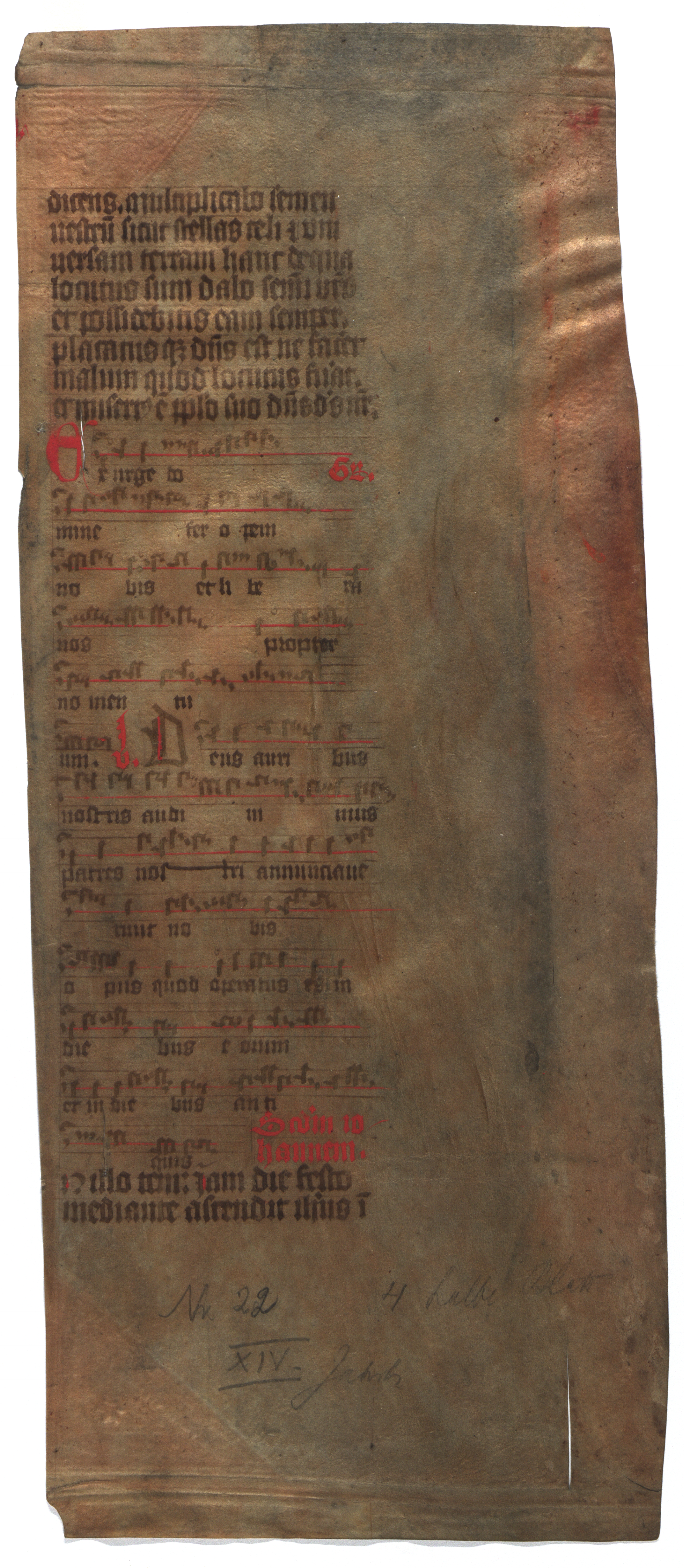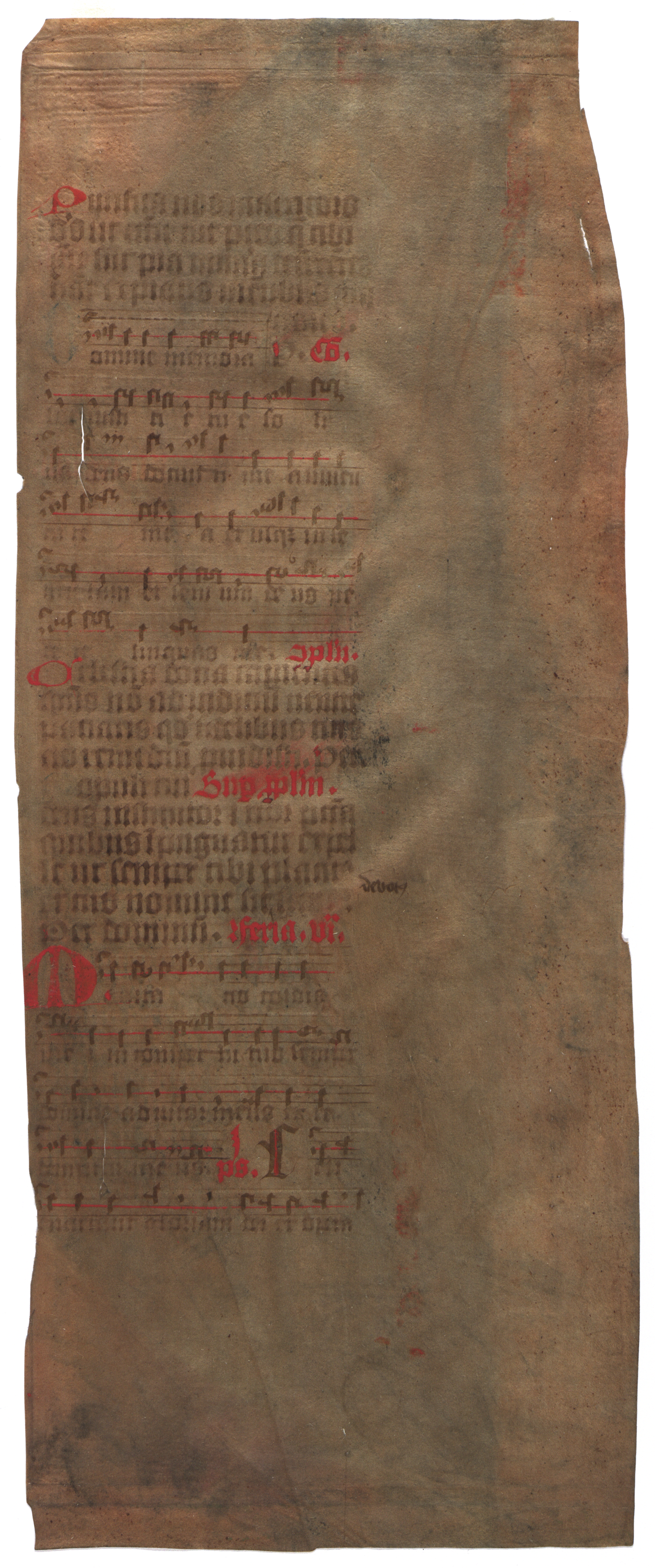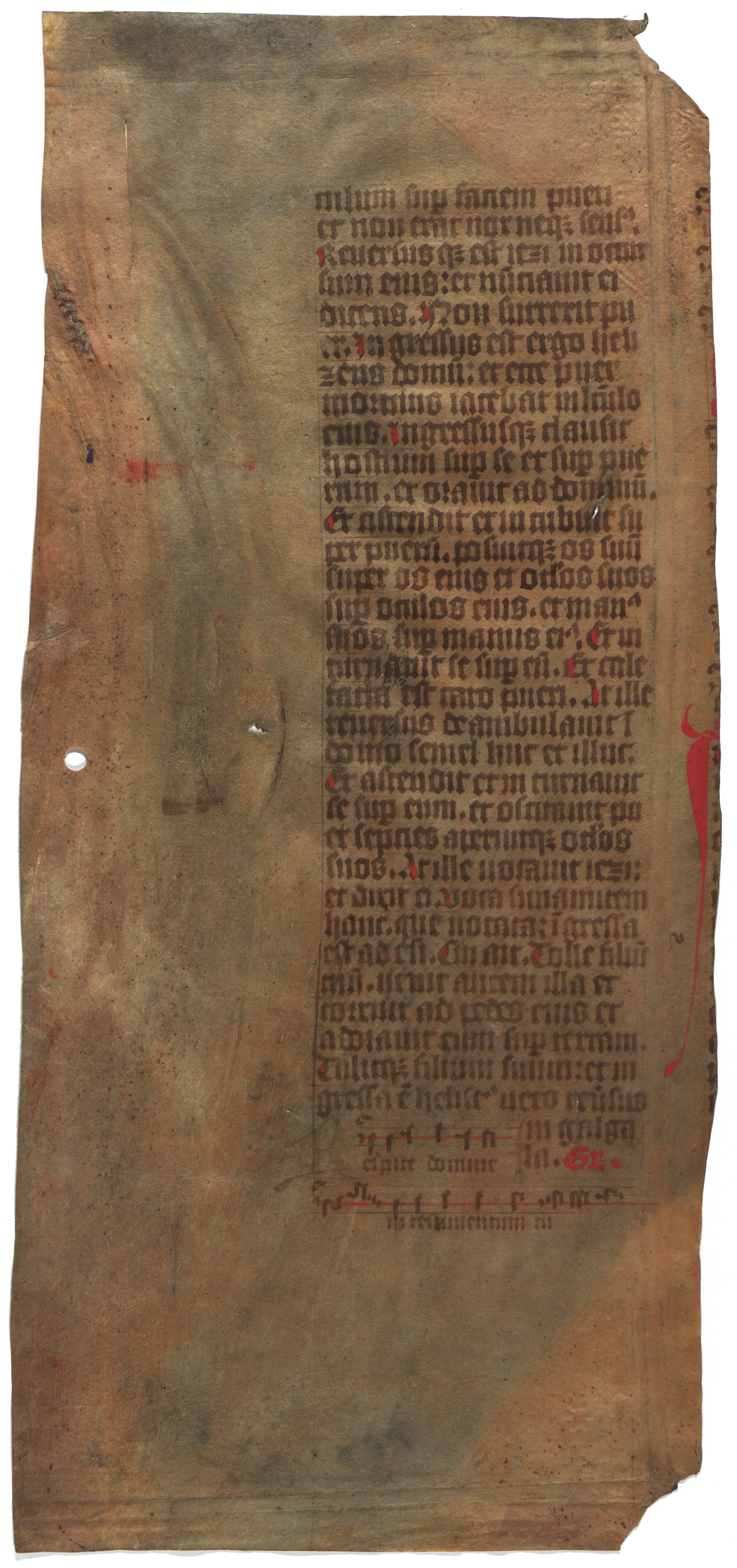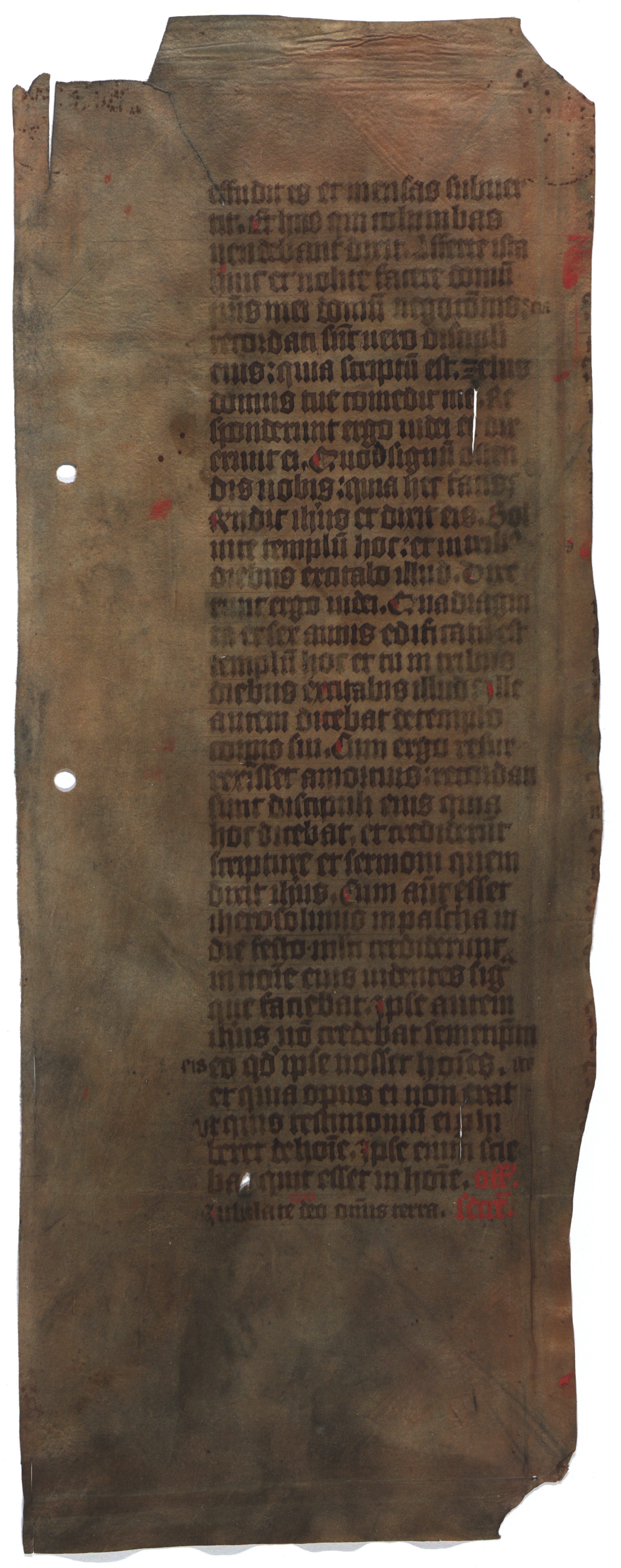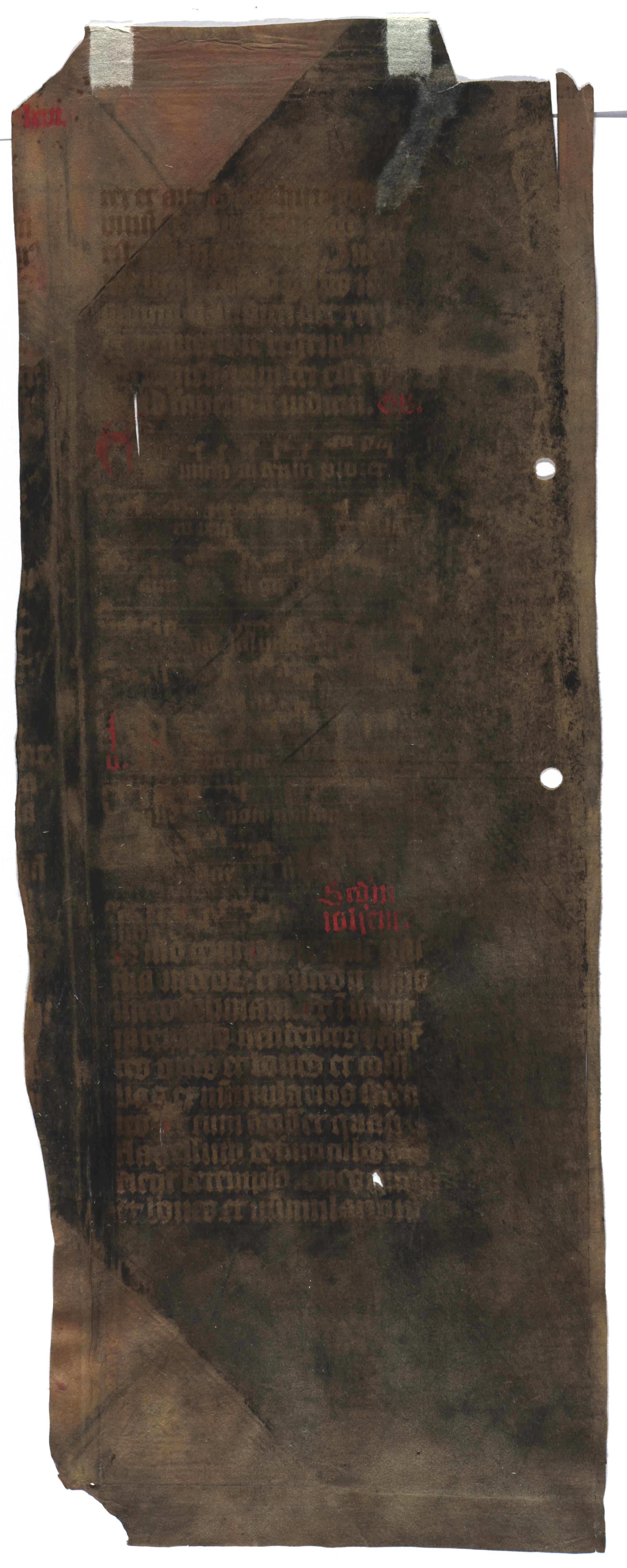 [Misālijs] [rokraksts] : [pergaments : teksta fragments]. [B. v., 15. gs.]. 4 lp. : pergaments, (1. 39,6x15,2 cm; 2. 39,6x5 cm; 3. 39,8x18,2 cm; 4. 39,6x15,8 cm)